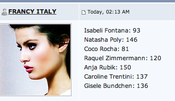 Isabeli Fontana: 72Natasha Poly: 146