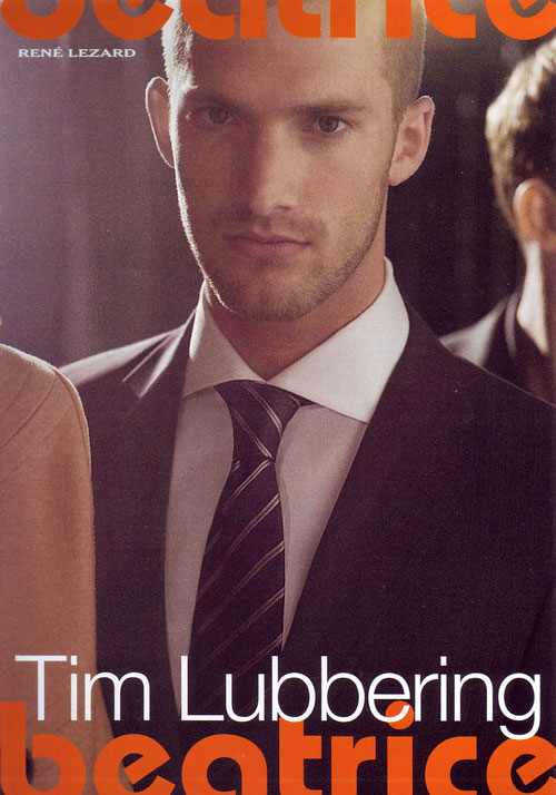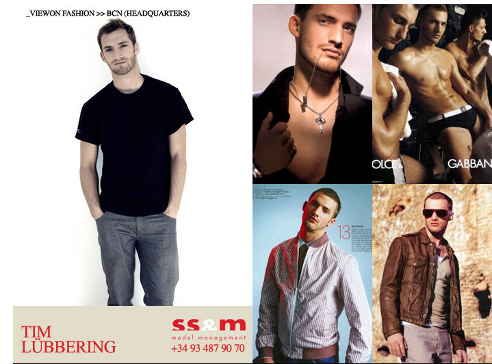 Tim LuebberingAgencies: Models 1 (London), New Madison (France), Beatrice (Milan), Bleu (L.A.), IMM (Belgium), SS&M (Barcelona), Ford (USA)