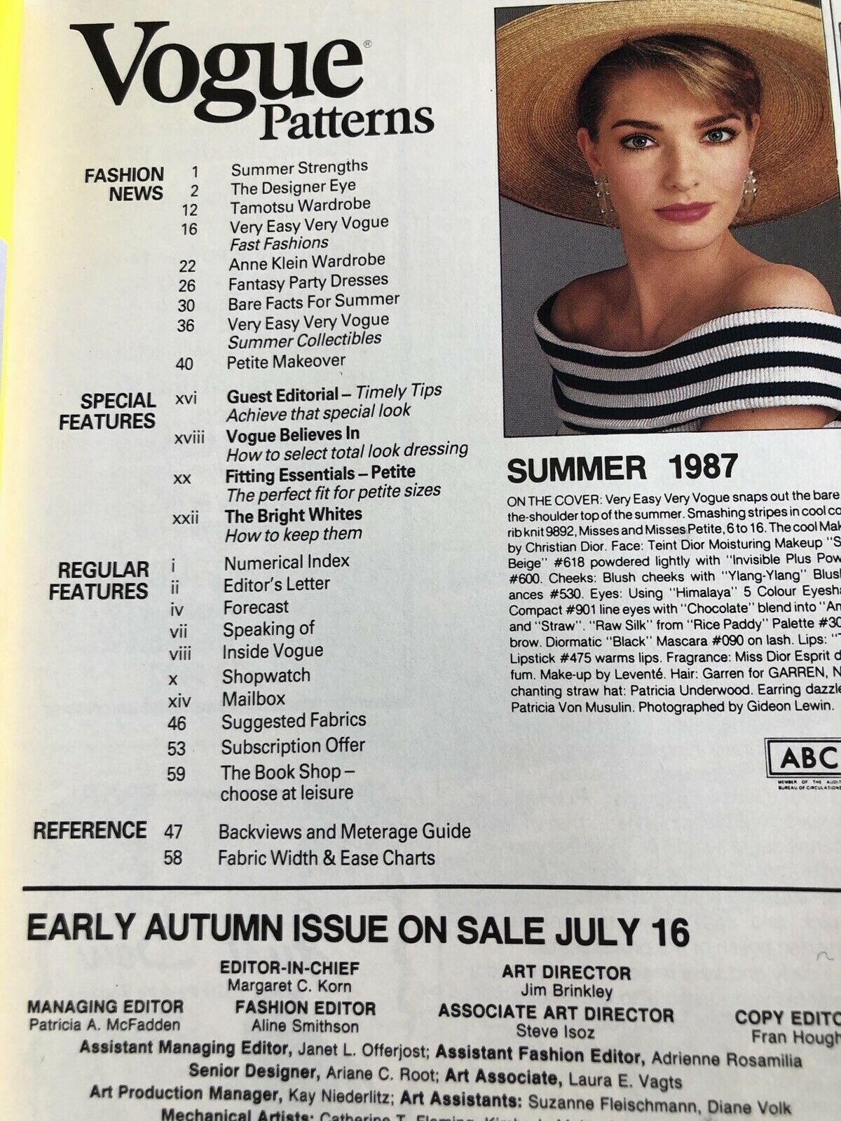 cover + cover-look VOGUE Patterns U.K. Summer 1987 by Gideon Lewin (photos by ebay-seller)