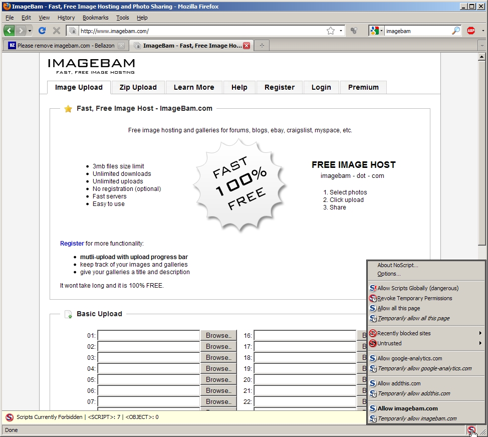 You might want to try Firefox with No Script for imagebam. It also stops the annoying pop-up they have for the larger view.Could you please provide more info on how to disable the script for Imagebam? Thanks!