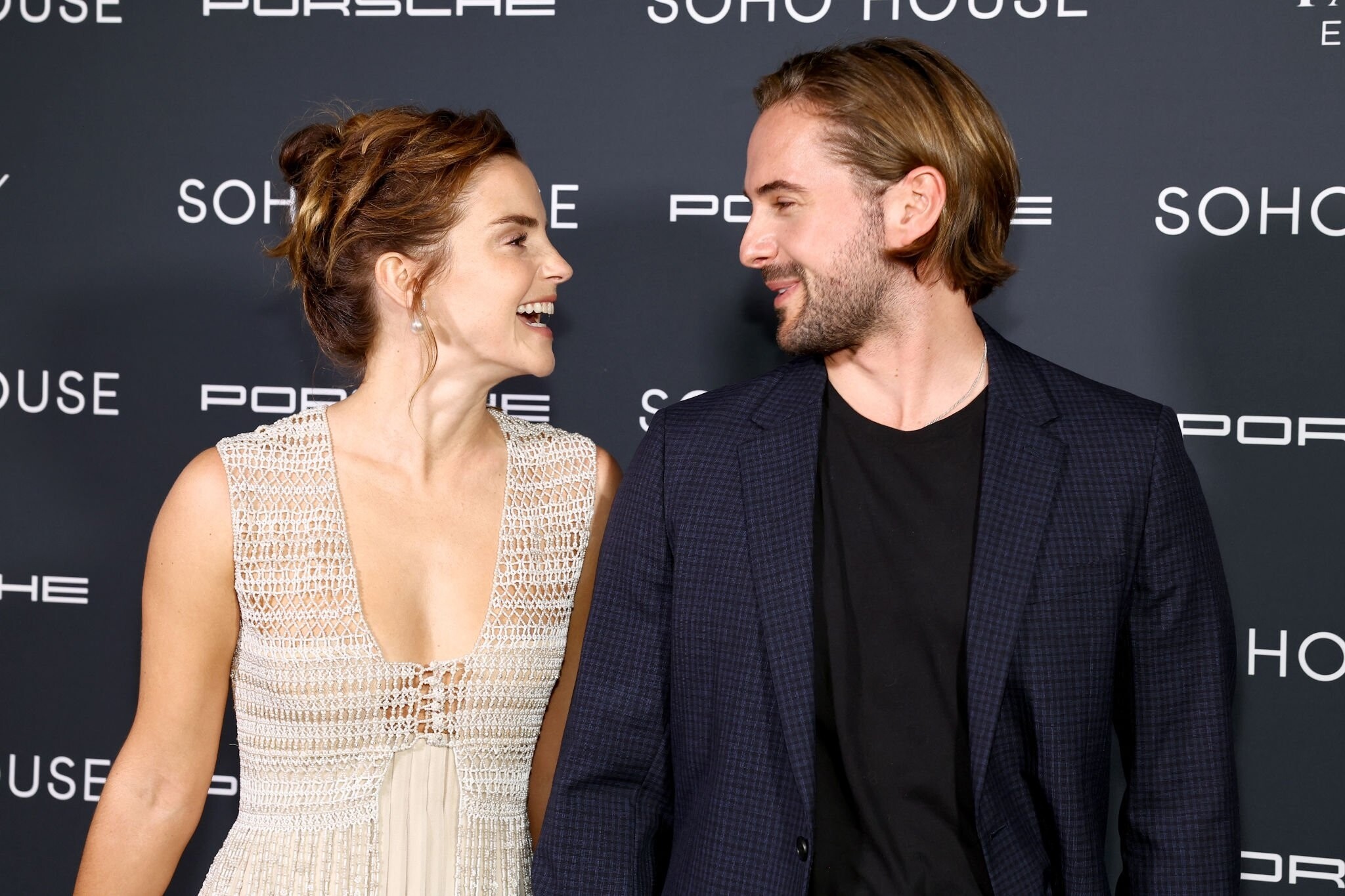 Emma Watson - Leggy in a white satin mini dress 09/21/2023