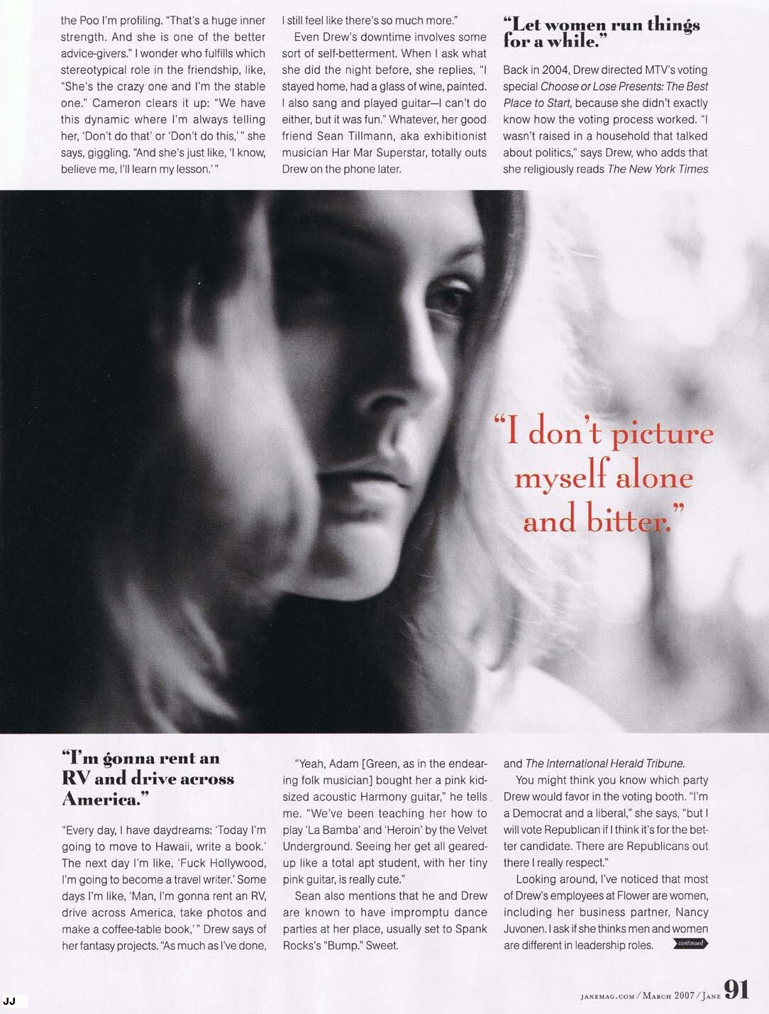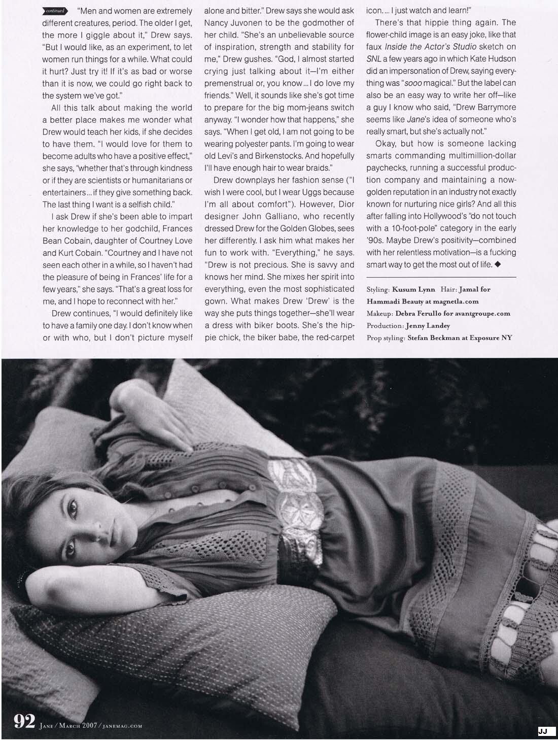 Magazine: Jane (March 2007) Title: "I was such a sexual, free nudist" Photographer: Carter Smith Model: Drew Barrymore