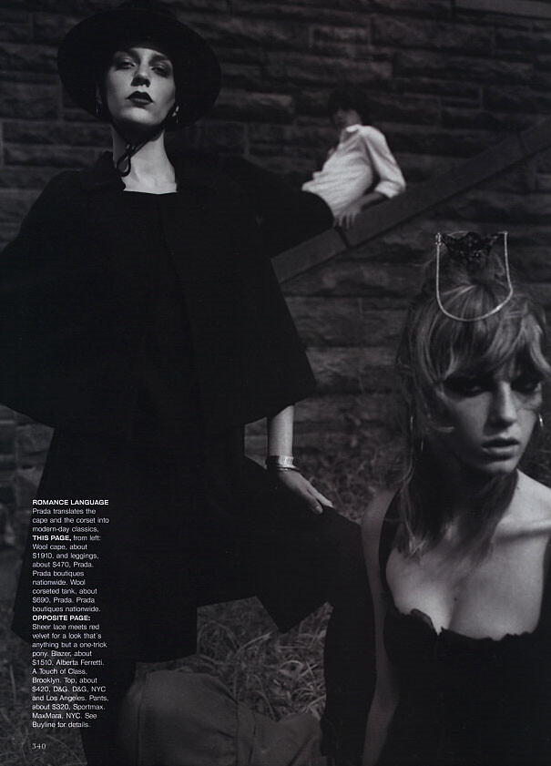 Magazine: Allure US (September 2003) Title: The Fall Forecast Photographer: Carter Smith Model: Tiiu Kuik, Michelle Buswell, Caroline Ribeiro, Yasmin Warsame