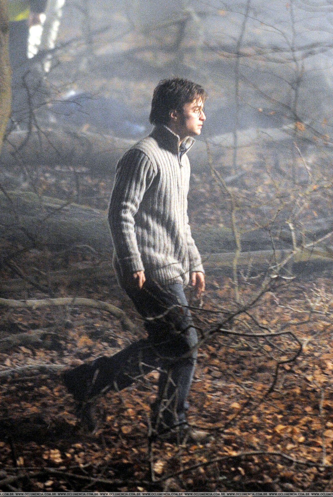 The mist thickens around wand-wielding Daniel Radcliffe in a forest scene from Harry Potter and the Deathly Hallows.The final film based on the JK Rowling books is expected to be released in November 2010 and become a worldwide hit.