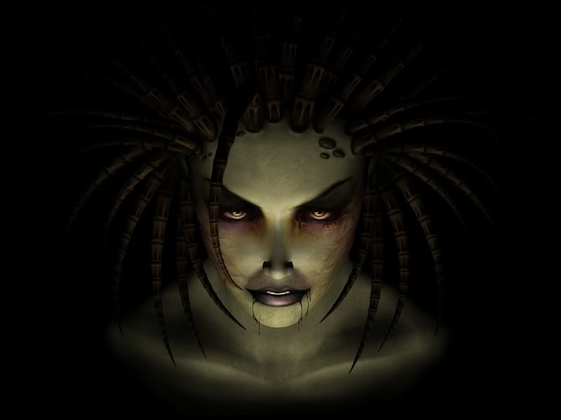 So, Natla is on vaccation, in disguise of course, just minding her own business playing slots. She's loosing though. Big time and she's forced to pay off her debt by performing in the circus. So she's there trying to make some money riding a unicycle and juggling bowling pins when all of a sudden the ground splits open and out comes Kerrigan who is intent on infesting all the humans. Natla, who wants the world for her own absolute rule feels threatened and challenges Kerrigan to a fight. It's too late for a fair fight at this point as Kerrigan had already sent a dozen or so infested humans at her to explode. There's blood and guts everywhere and now Natla is pissed because her suite is ruined. She sends a doppleganger after Kerrigan but it looks more like the human Kerrigan.... hehe... to be continued.