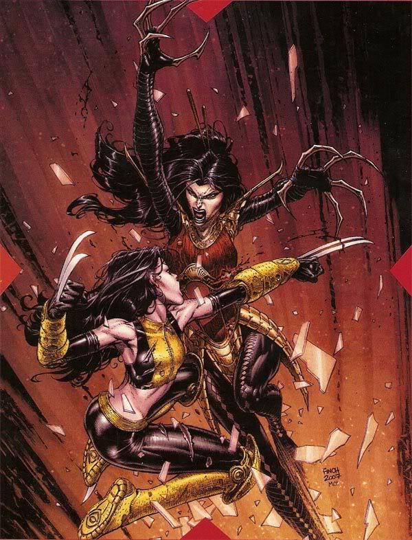 Lady Deathstrike tears Jean Grey's clothes with her claws