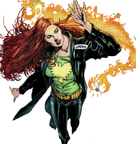 Jeans eyes become fire as the Phoenix takes hold of her body,