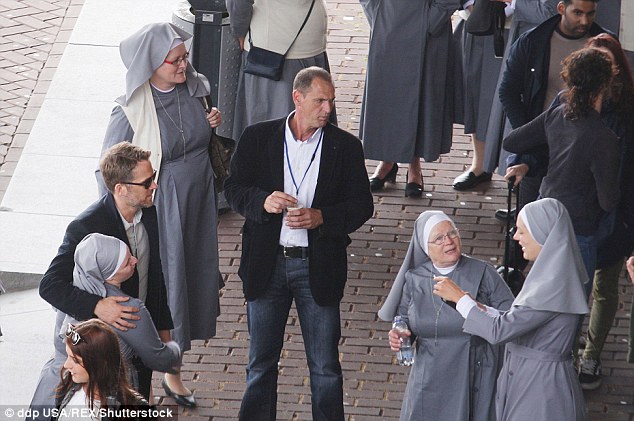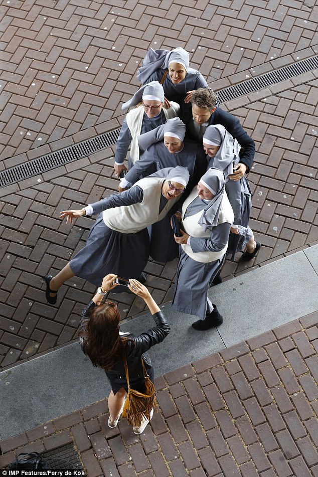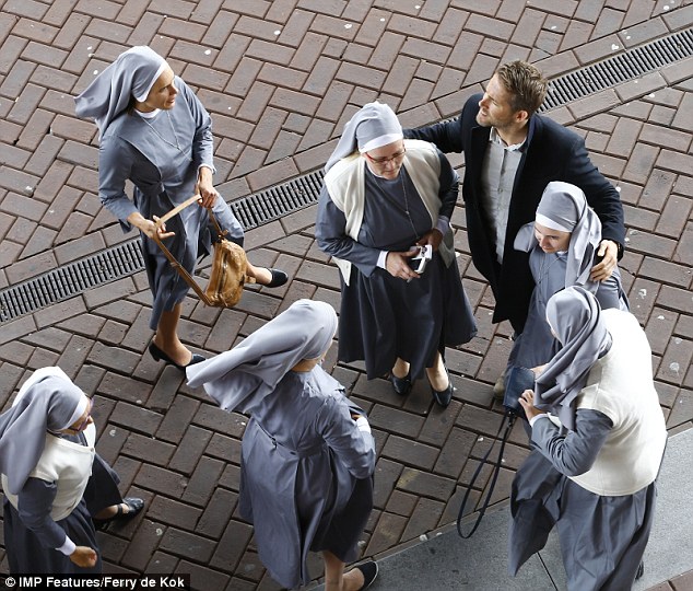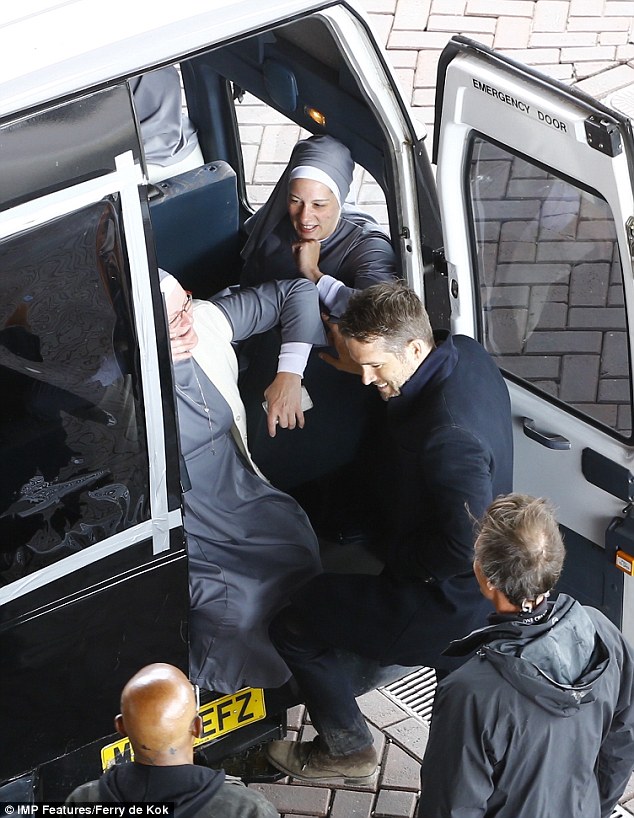 Ryan Reynolds and Samuel L Jackson were mobbed by a gang of nuns on the Amsterdam set of The Hitman's Bodyguard on Tuesday