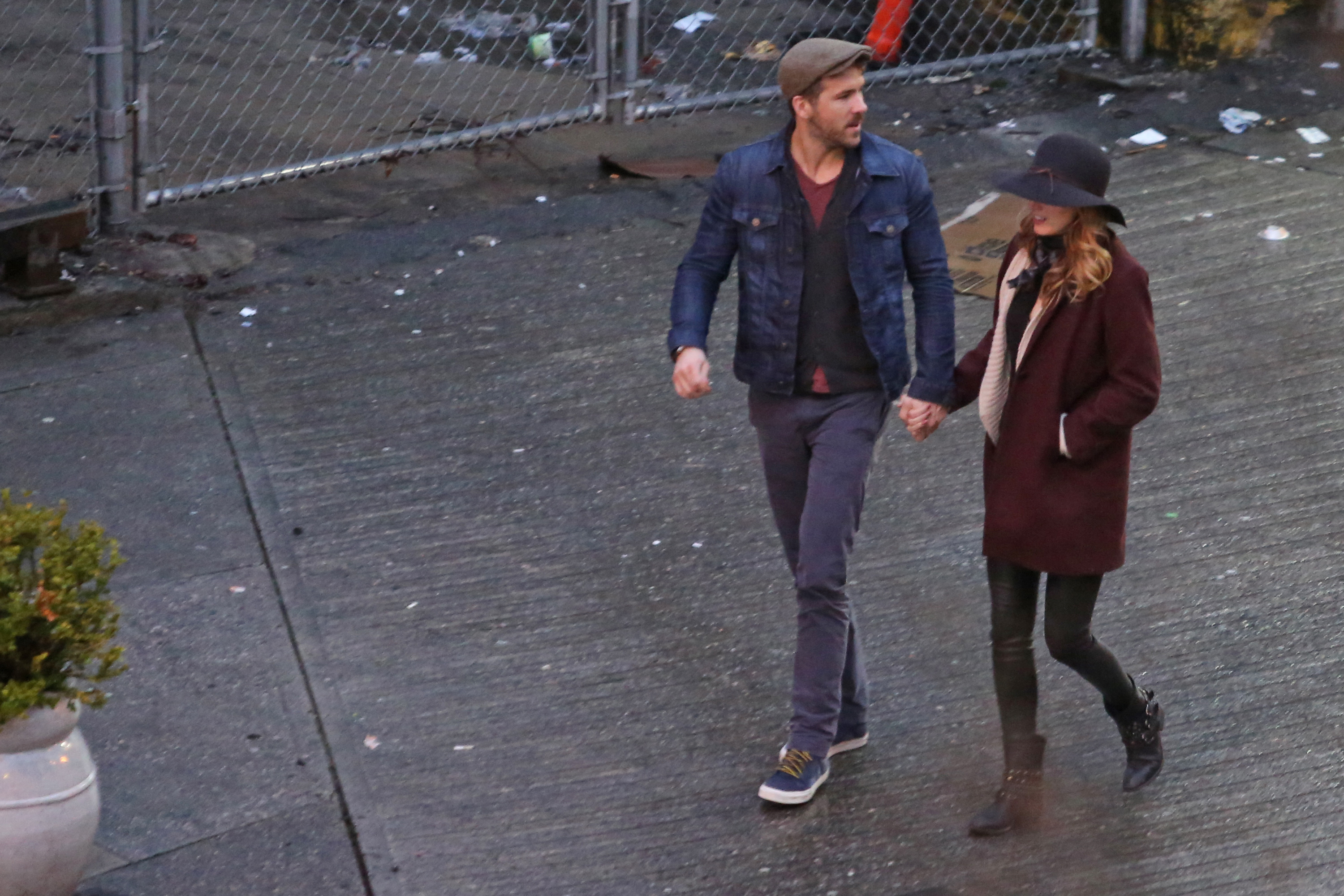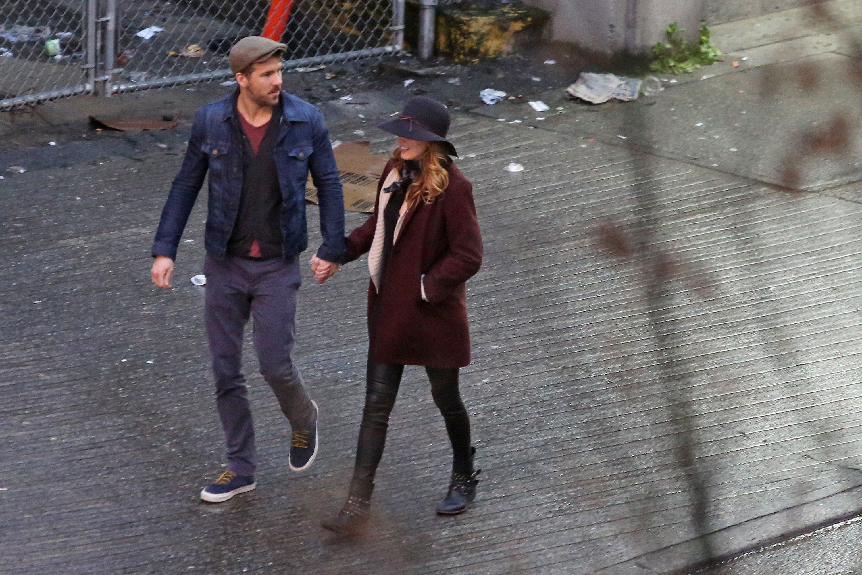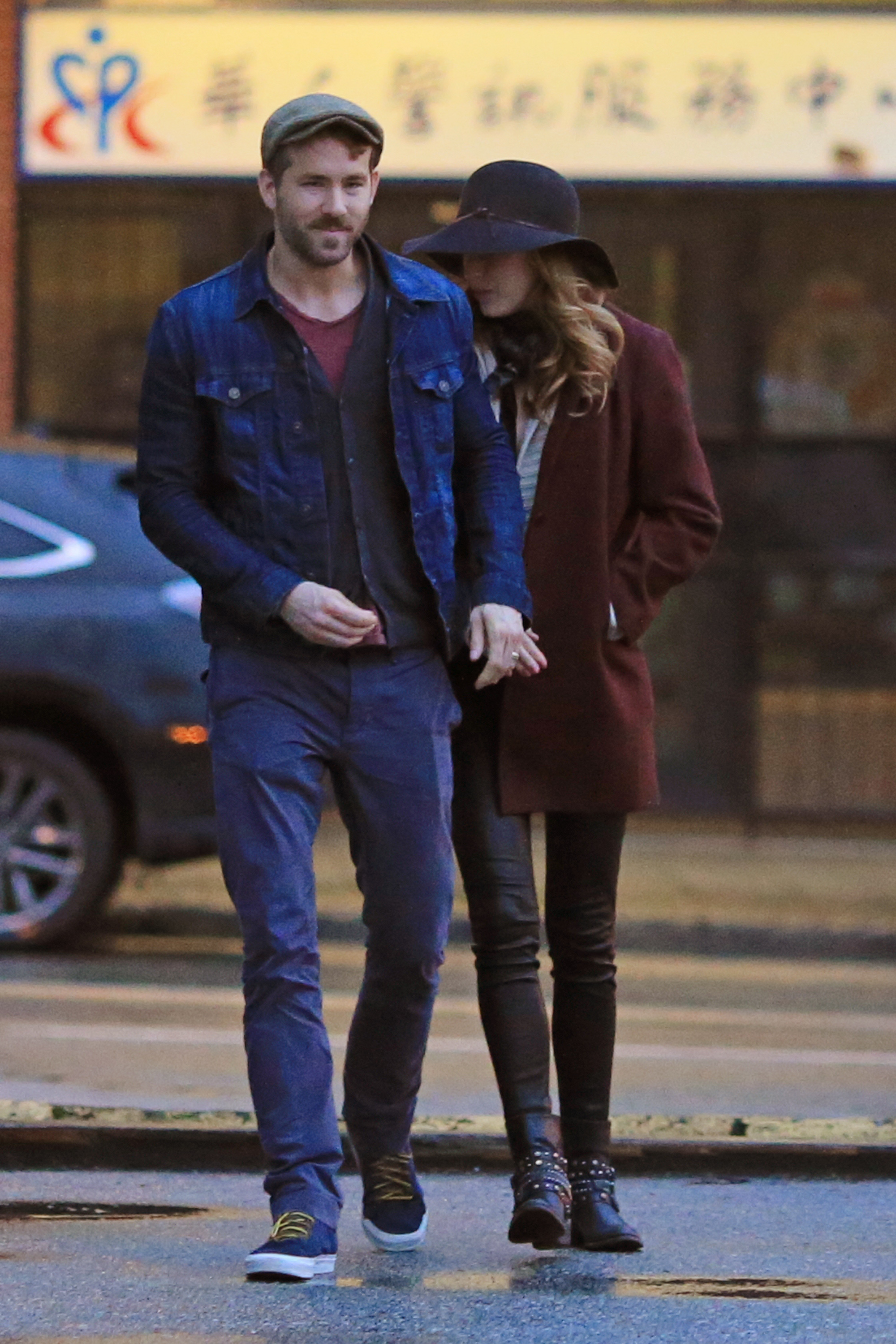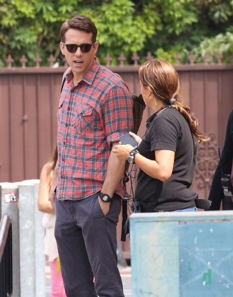 Actor Ryan Reynolds gets a special visit from his wife Blake Lively while filming scenes for 'Mississippi Grind' filming in New Orleans, Louisiana on February 18, 2014.