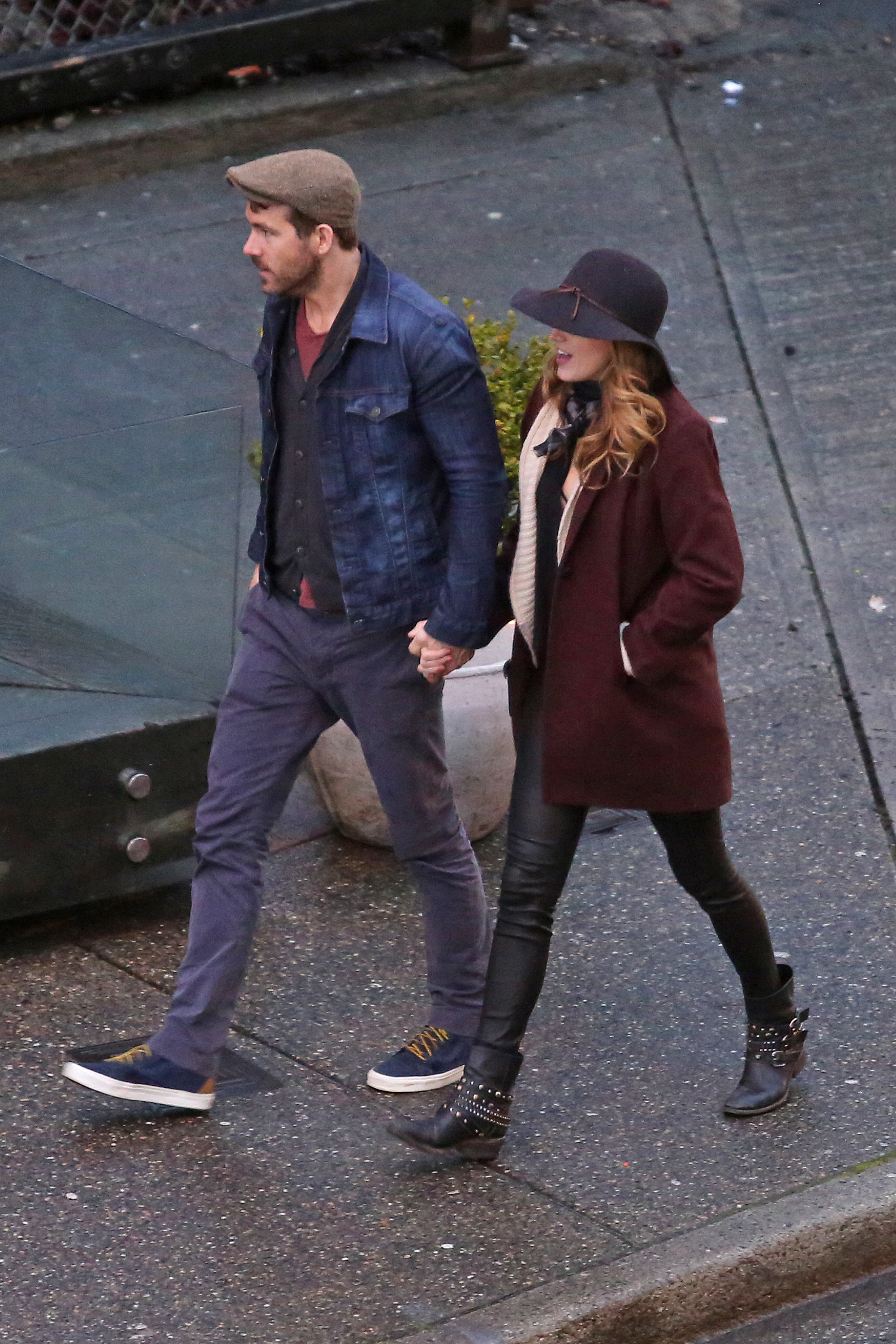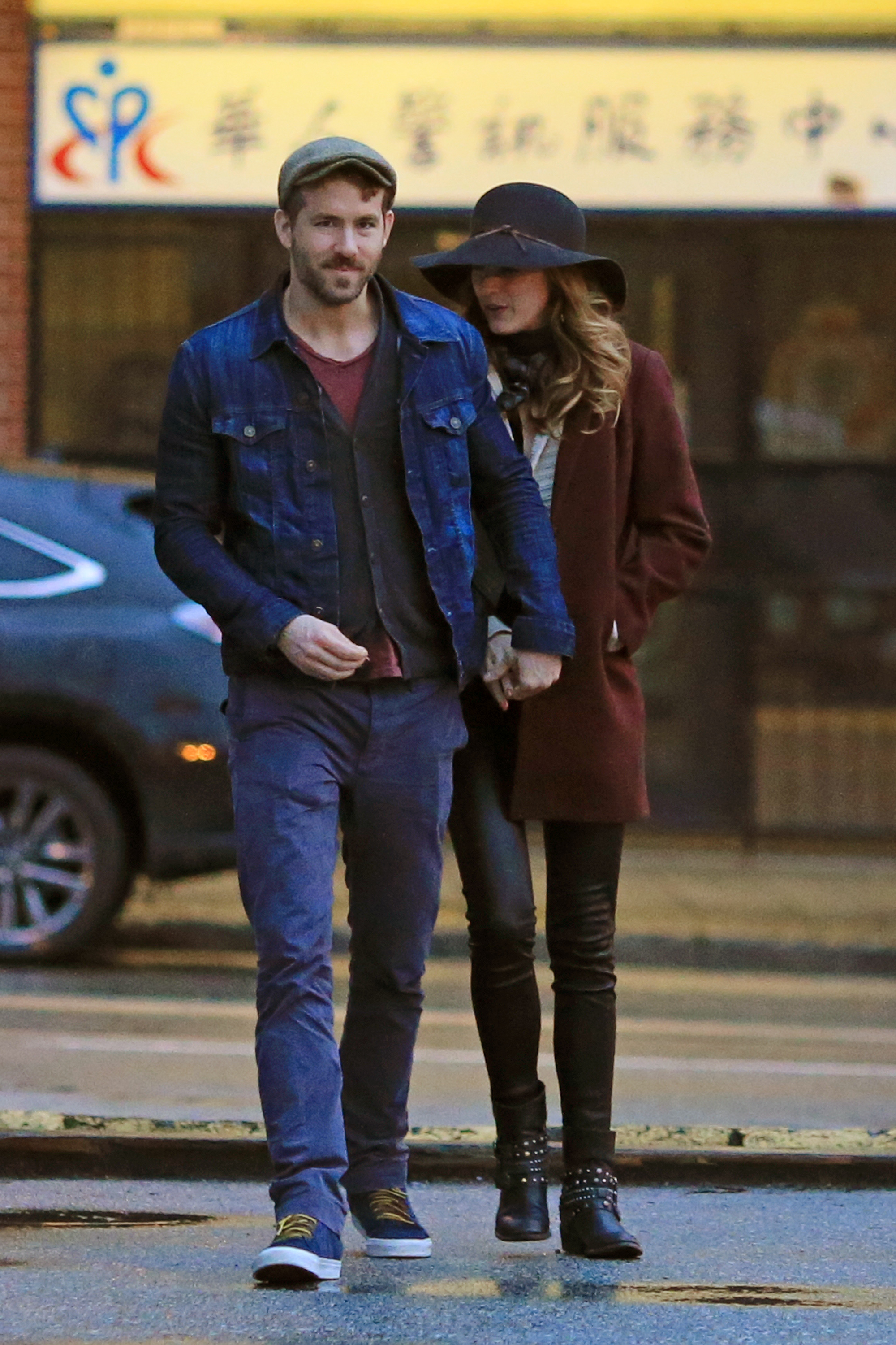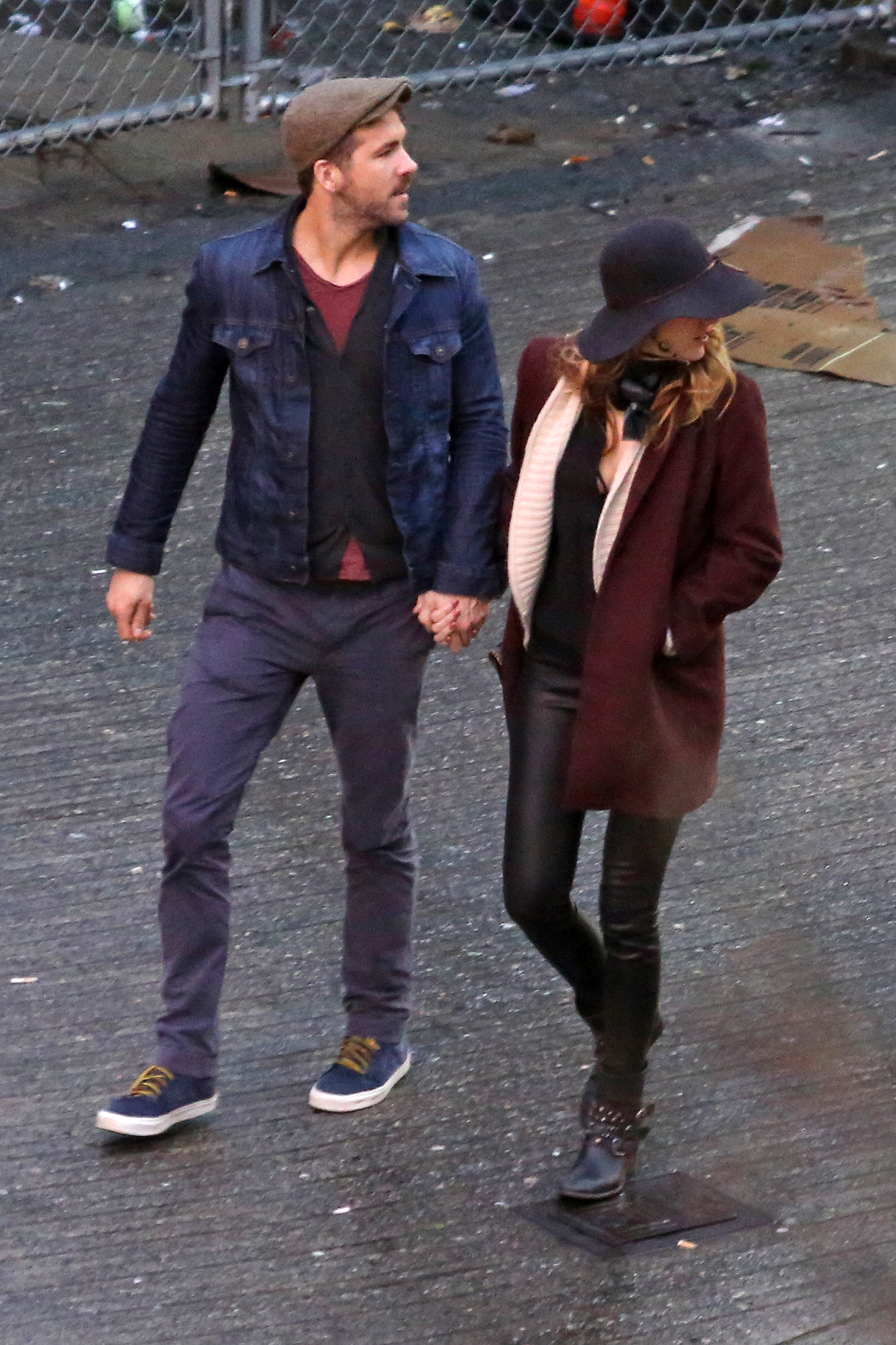 Actor Ryan Reynolds gets a special visit from his wife Blake Lively while filming scenes for 'Mississippi Grind' filming in New Orleans, Louisiana on February 18, 2014.