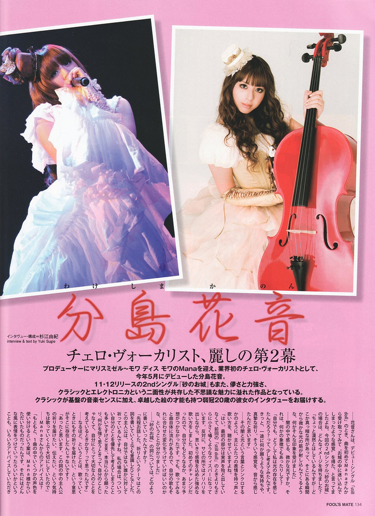 KW: It was through the demo tape that I did for Sony Music. I already had that style of playing the cello and singing, and Mana saw the video footage. At that time he was thinking of forming a new project with a female vocalist, and my style caught his attention.