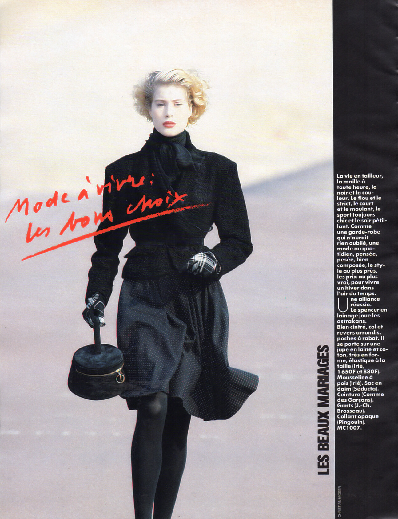 "Mode a vivre: Les bons choix" - marie claire France October 1987 #422 by Christian Moser - also showing Emma Warg, Deborah Klein, Karina Krawczyk aka Ana-Karina Kregel