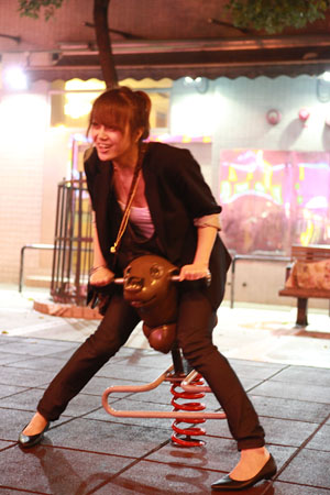 Looks like perfect girlfriend material for The Baron! Tell me, is that the lovely Zhang Xue in the pictures with the clown?