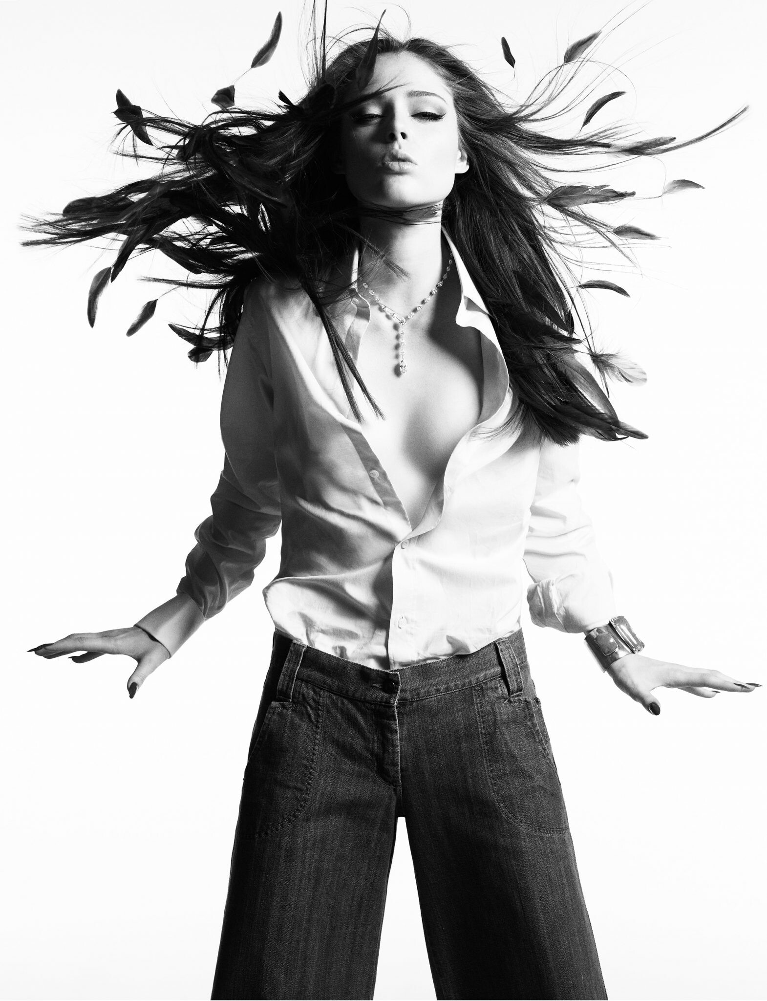 Magazine: Numéro #56 (September 2004) Title: Clair de lune Photographer: Greg Kadel Fashion Editor: Samuel François Assistant: Alexandra Bernard Makeup: Alice Ghendrih Hair: Raymond McLaren Model: Cameron Russell