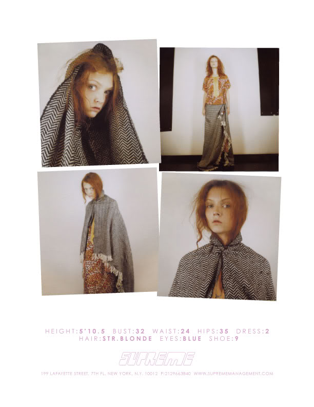 At the moment it will be very difficult ot become a Supermodels, even faces like Natasha Poly, Freja Beha etc aren't supermodels. The time with Supermodels is over, we have too many new faces in the market for that, but Stasya could be a very good Model, she could go very far, example like Vlada I could imagine, let's see !!! I'll have my fingers crossed for her at the fashionweek time
