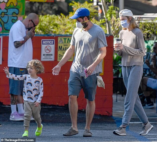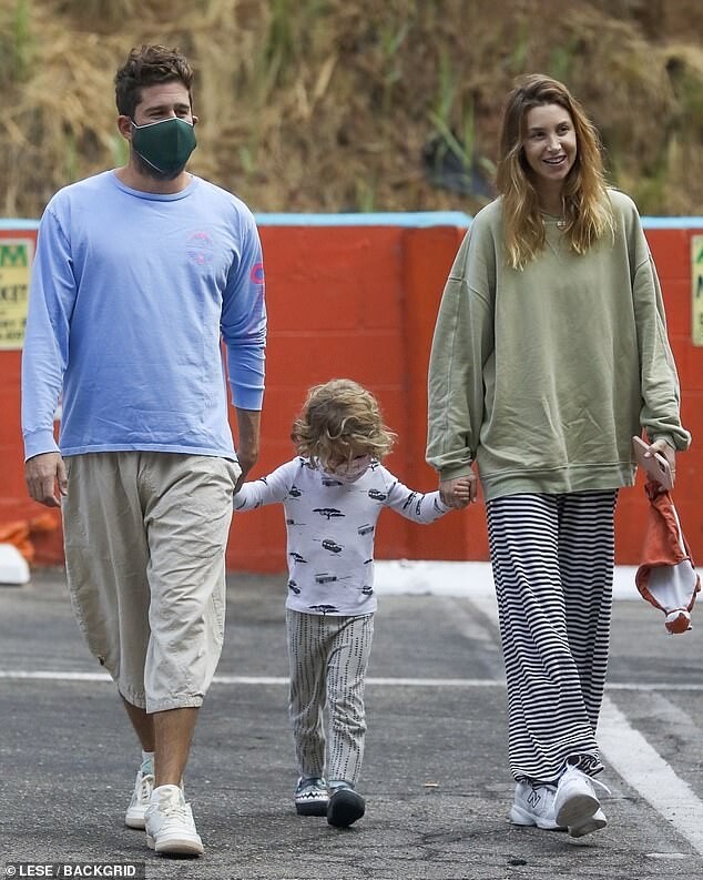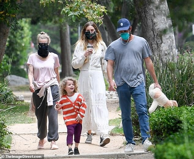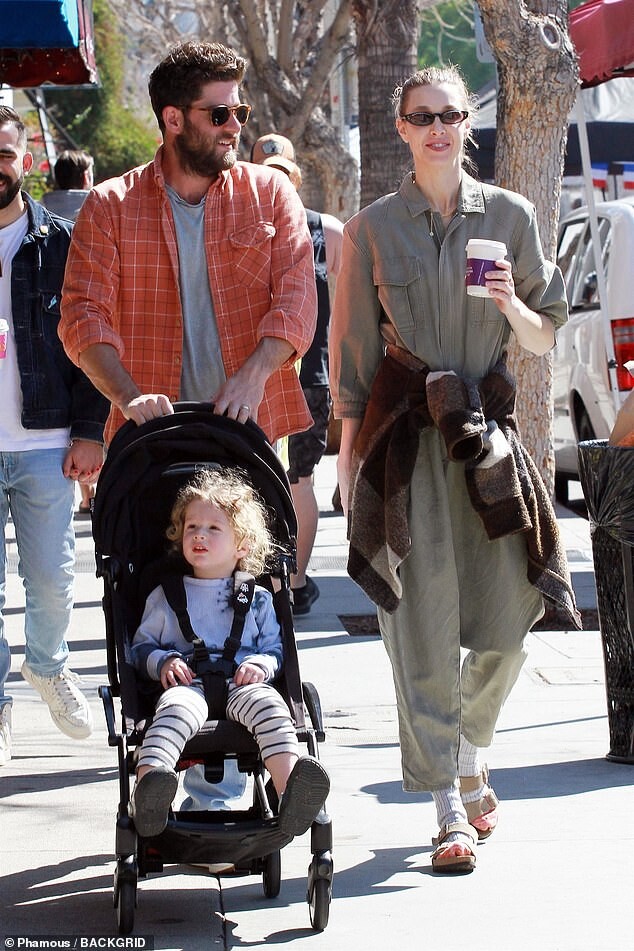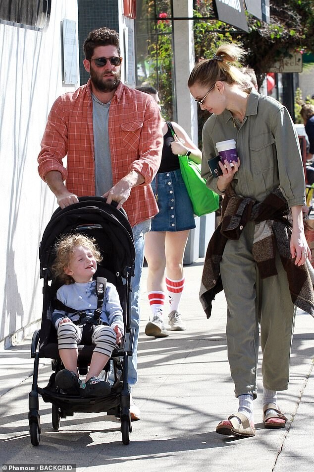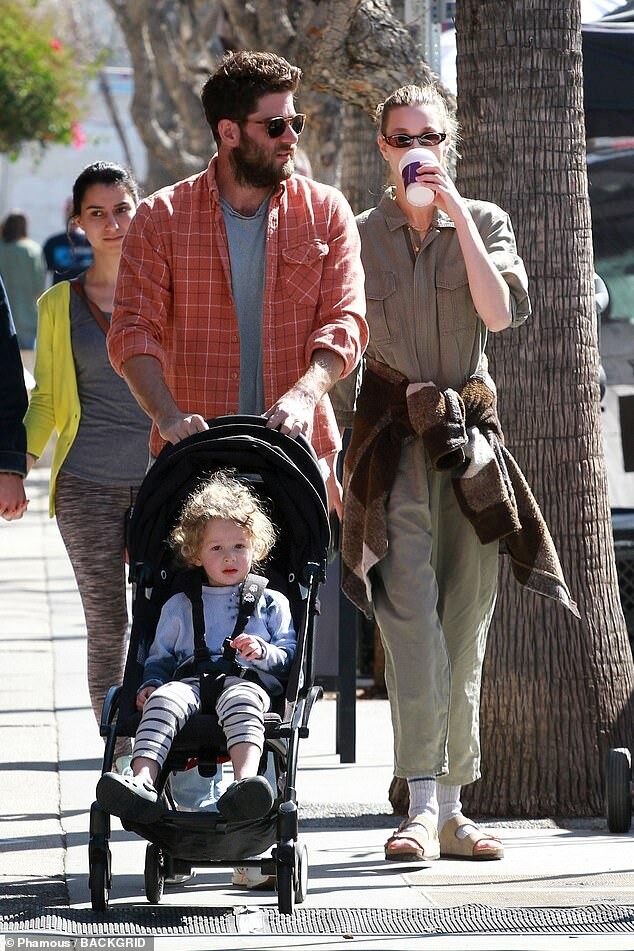 with her mother Vicki (L), husband Tim Rosenman, and son Sonny Sanford