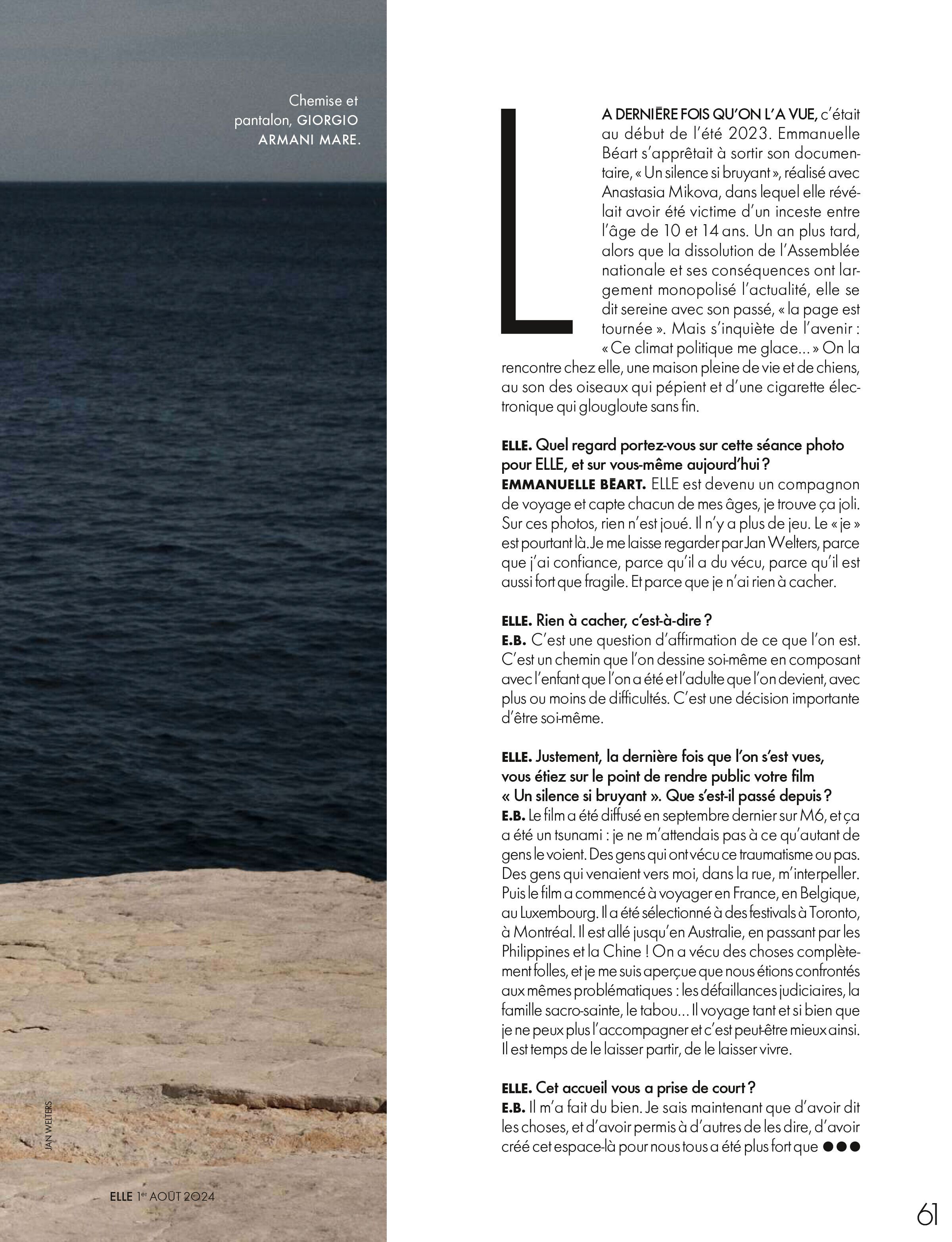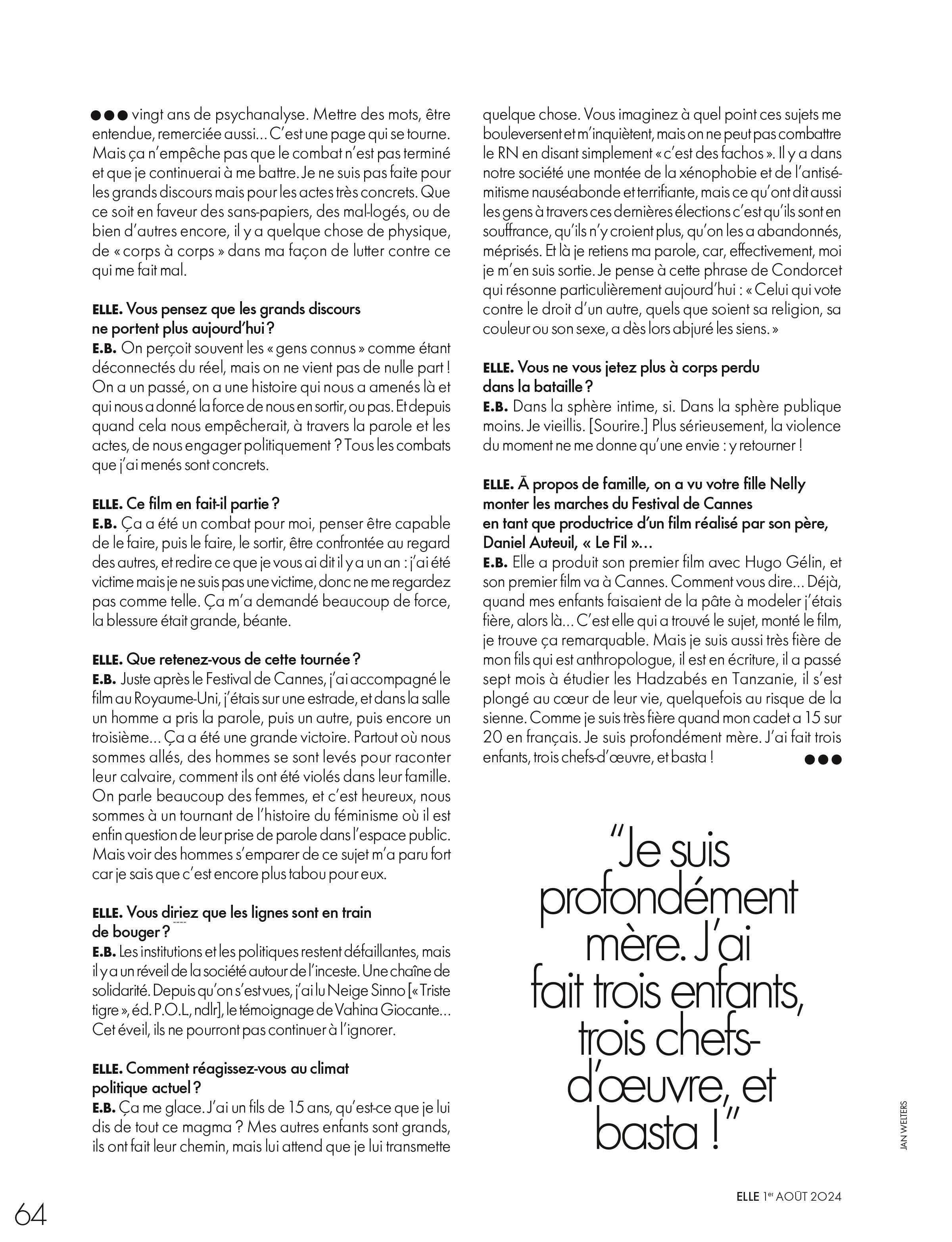 Elle - 14 Septembre 2023 (No. 4056) Emmanuelle Beart, victim of incest Photo : Matthew Brookes