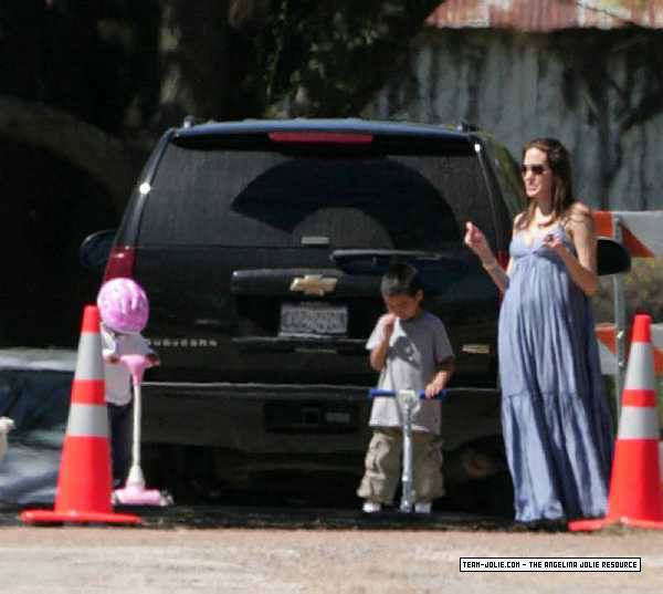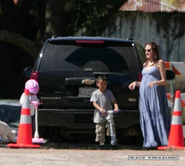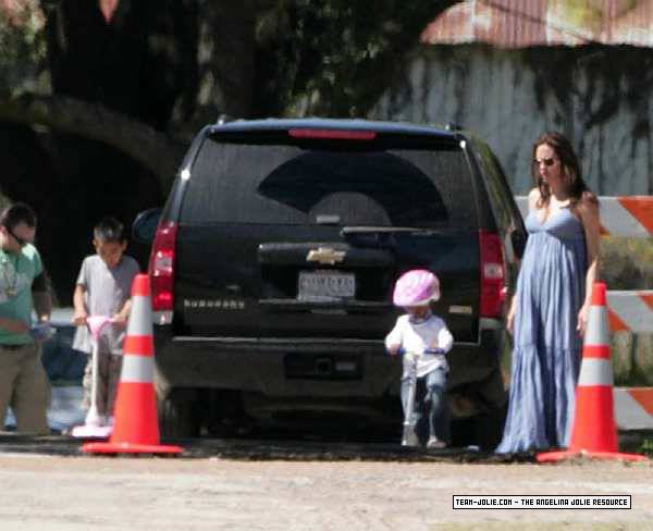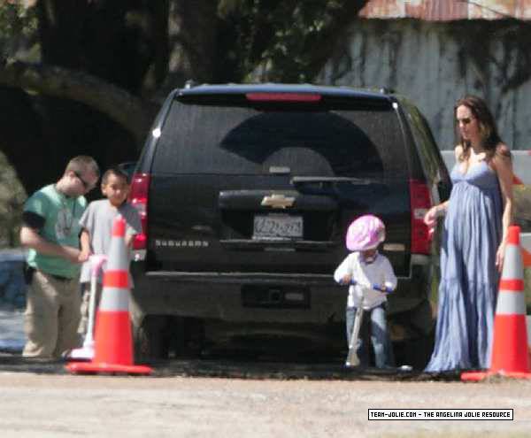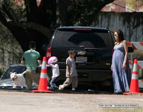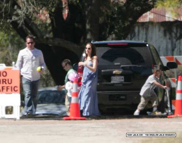 Takes Zahara and Maddox to visit Brad on set in Smithville, Texas - 12th March 2008