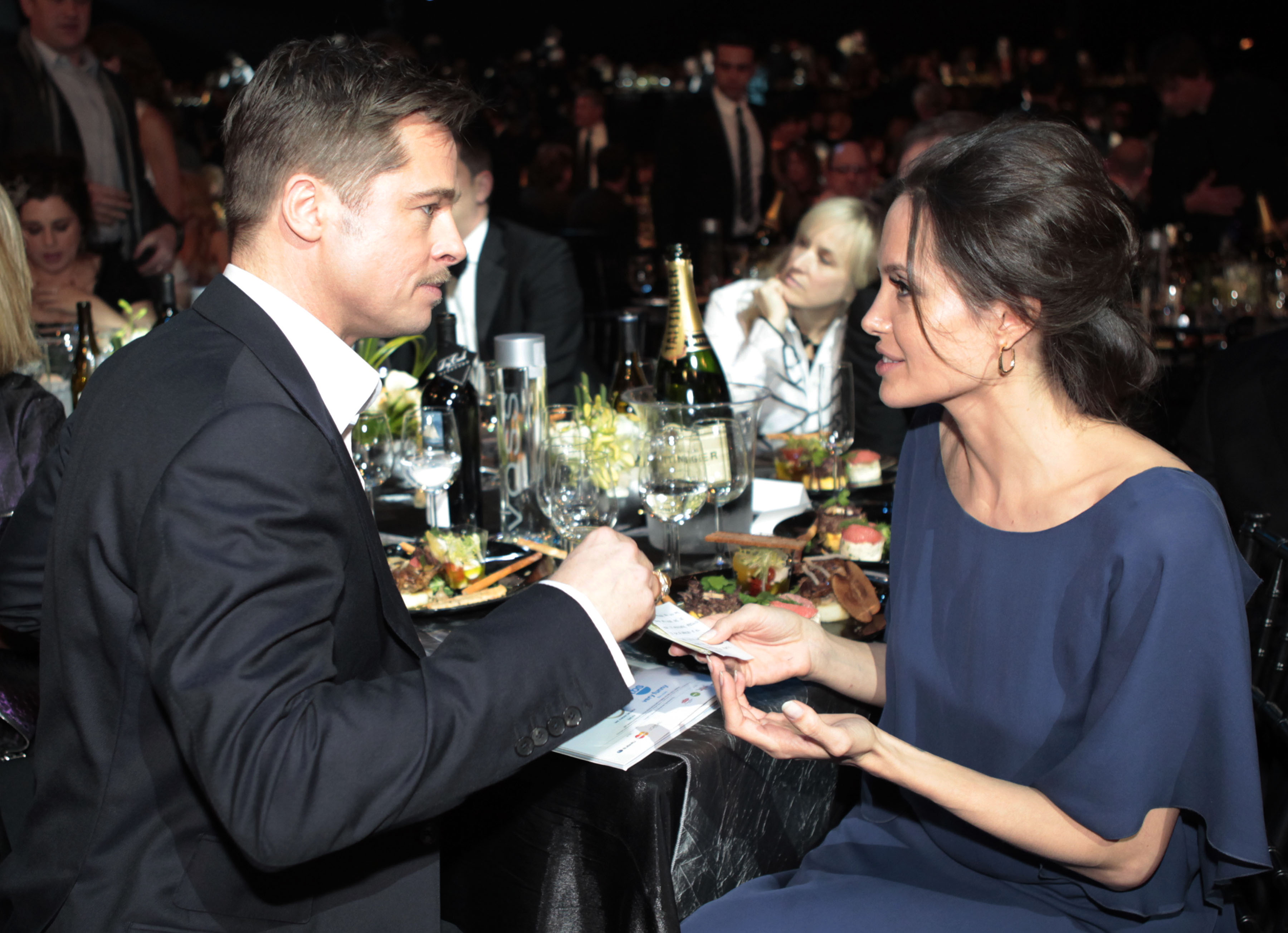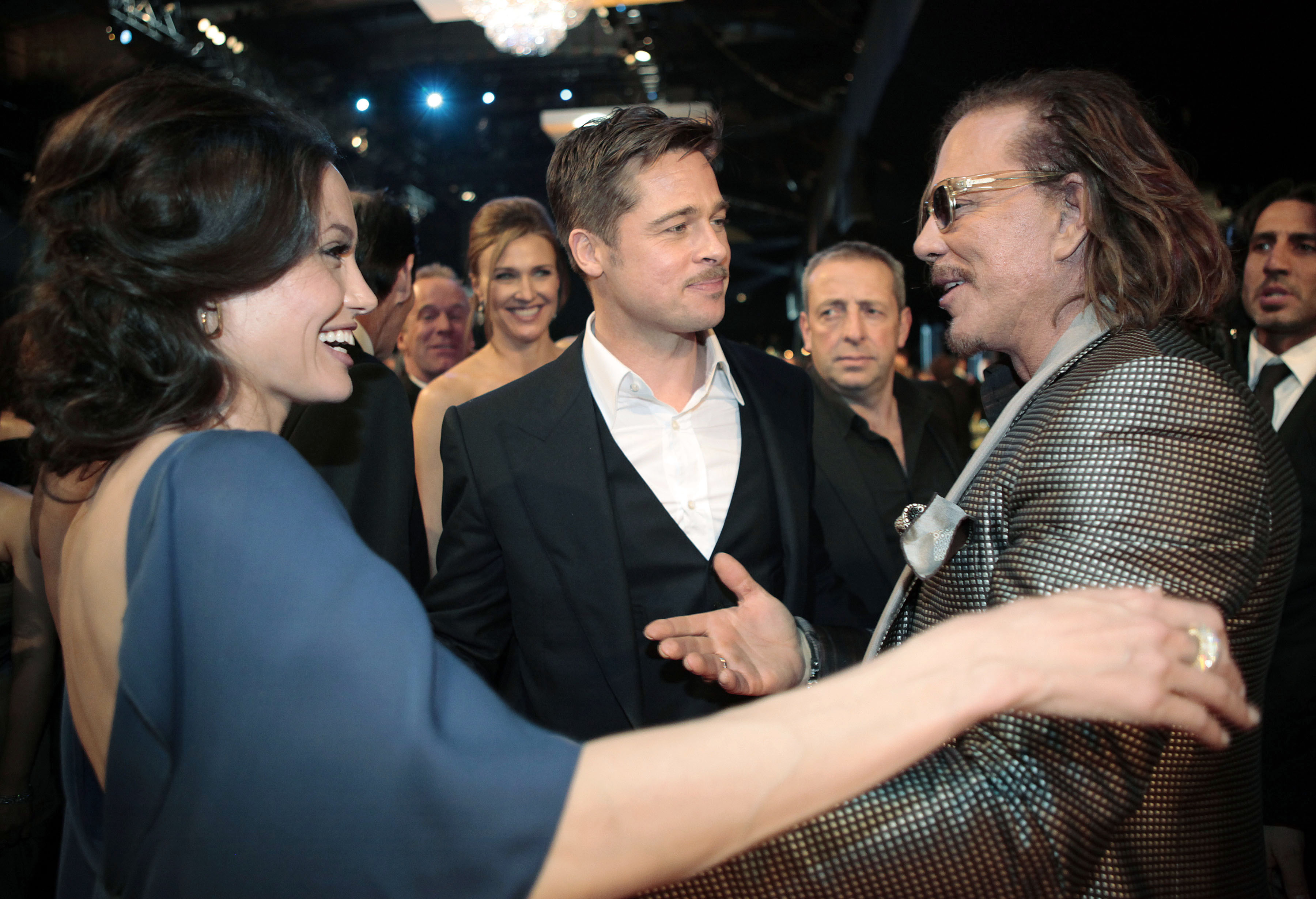 Angelina Jolie wore her cornflower blue Max Azria gown backward at Sunday’s SAG Awards in Los Angeles.