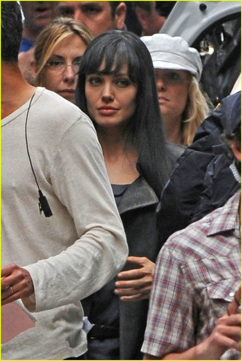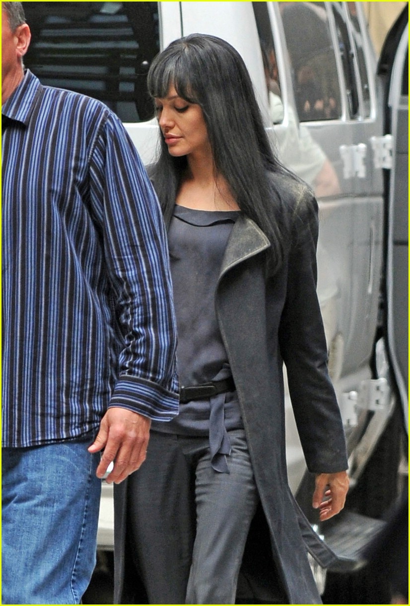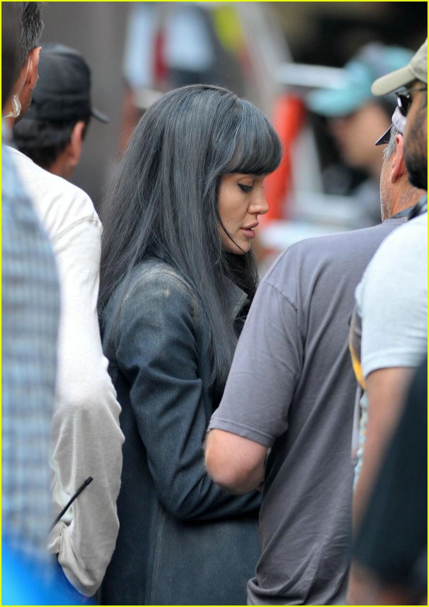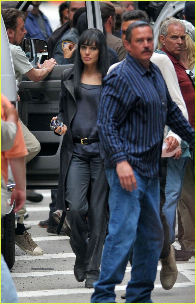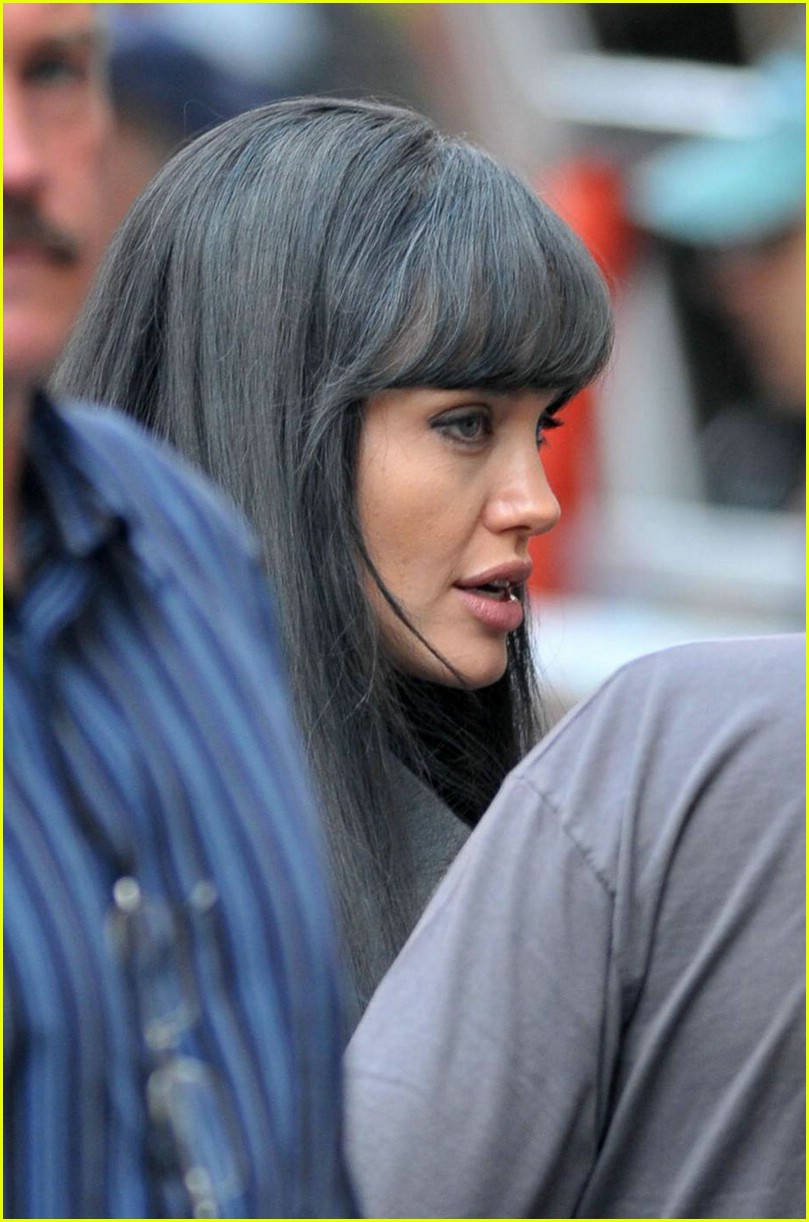 Angelina Jolie continues to look fierce in a gray wig while filming her new flick, Salt on the Upper East Side of Manhattan on Saturday.
