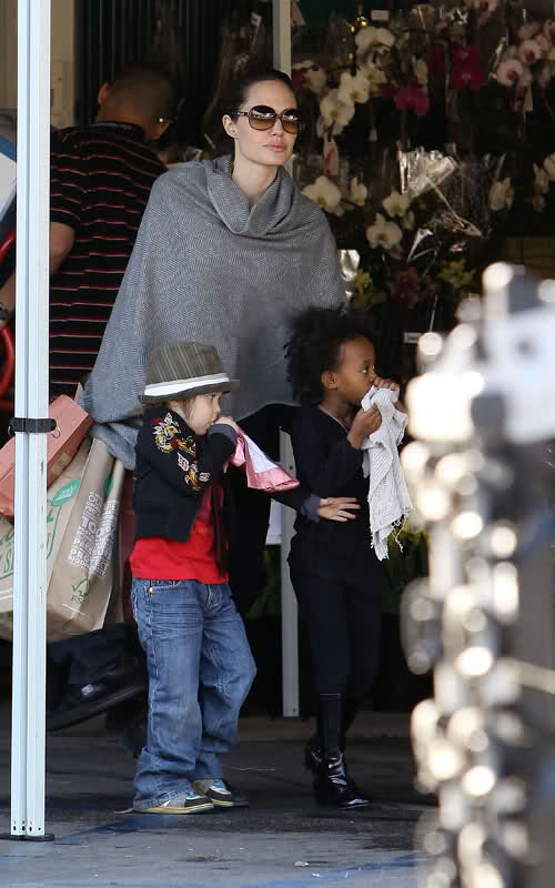 On Monday, Angie hung out of a helicopter over Long Island’s Bethpage while shooting a scene for her upcoming film Salt, set for release in July. The entire Jolie-Pitt clan has been in town for it!