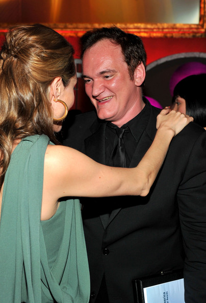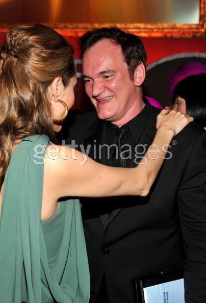 Found a little video, there you can see her while Brad was talking and later you can see them together at Tarantinos' table.