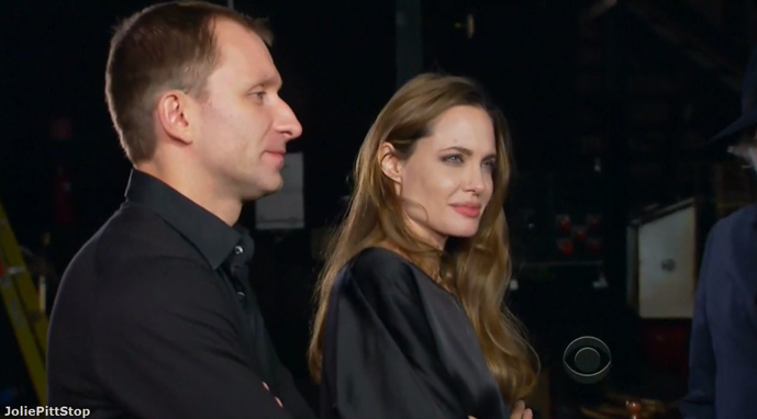 JOLIE: I’m just blushing that you’ve got such nice things to say. That means so, so much to me. I’m just glad you didn’t call me and whisper, “You know, I think you should just hide it.” You know? “Start over!”