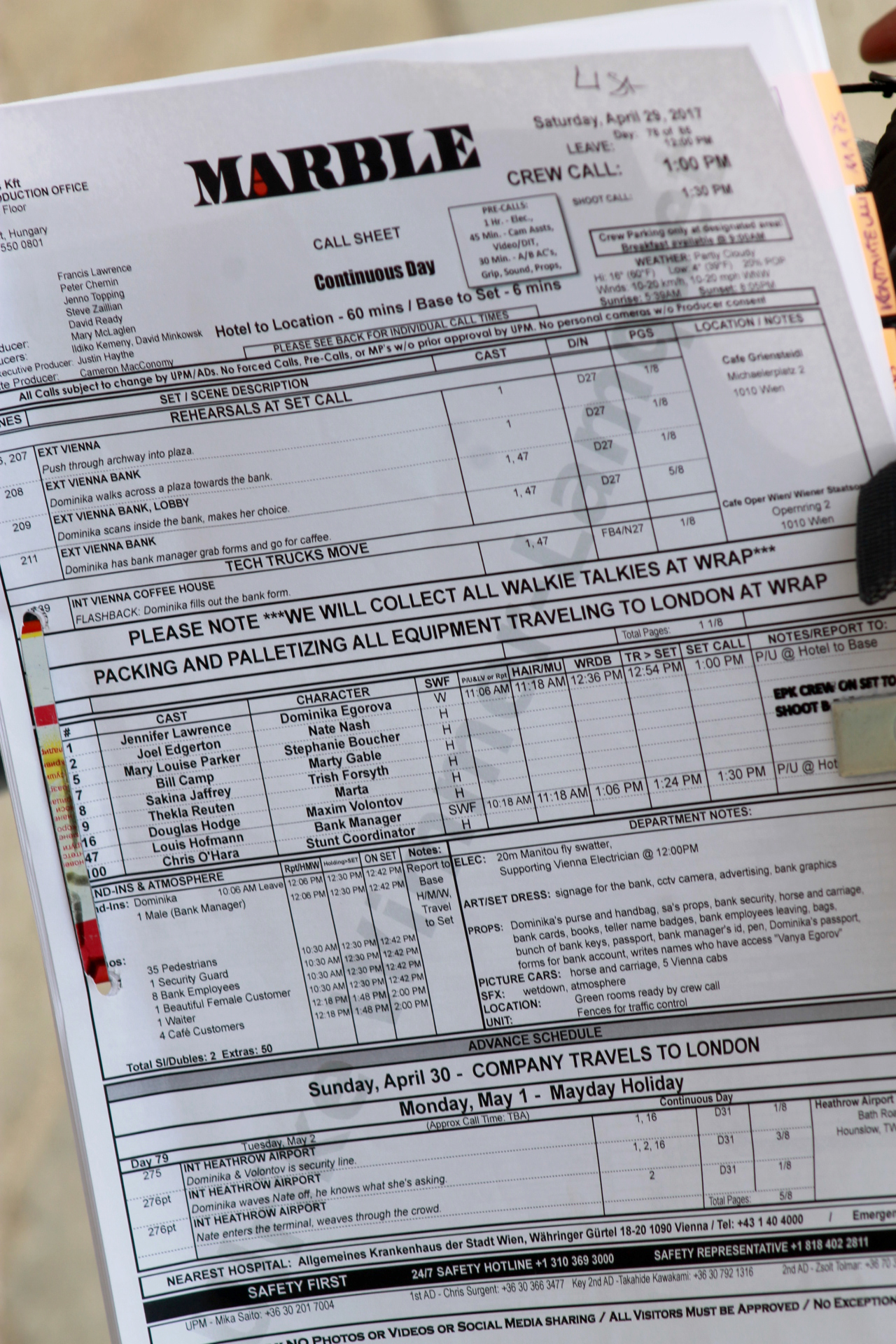''Red Sparrow'' set, Vienna, Apr 29 '17