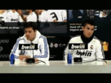 part I really liked was when the presenters asked Xabi to choose between Mourinho and Vicente del Bosque. Xabi starts his answer with, “well both of them…” but they insist that he has to make a choice. So Xabi responds, “Joder, they’re both my coaches at the moment, I can’t.” So the presenters say, we won’t say anything, just smile if you support VDB, and now smile if you support Mou, and then we find out that Xabi smiled throughout.