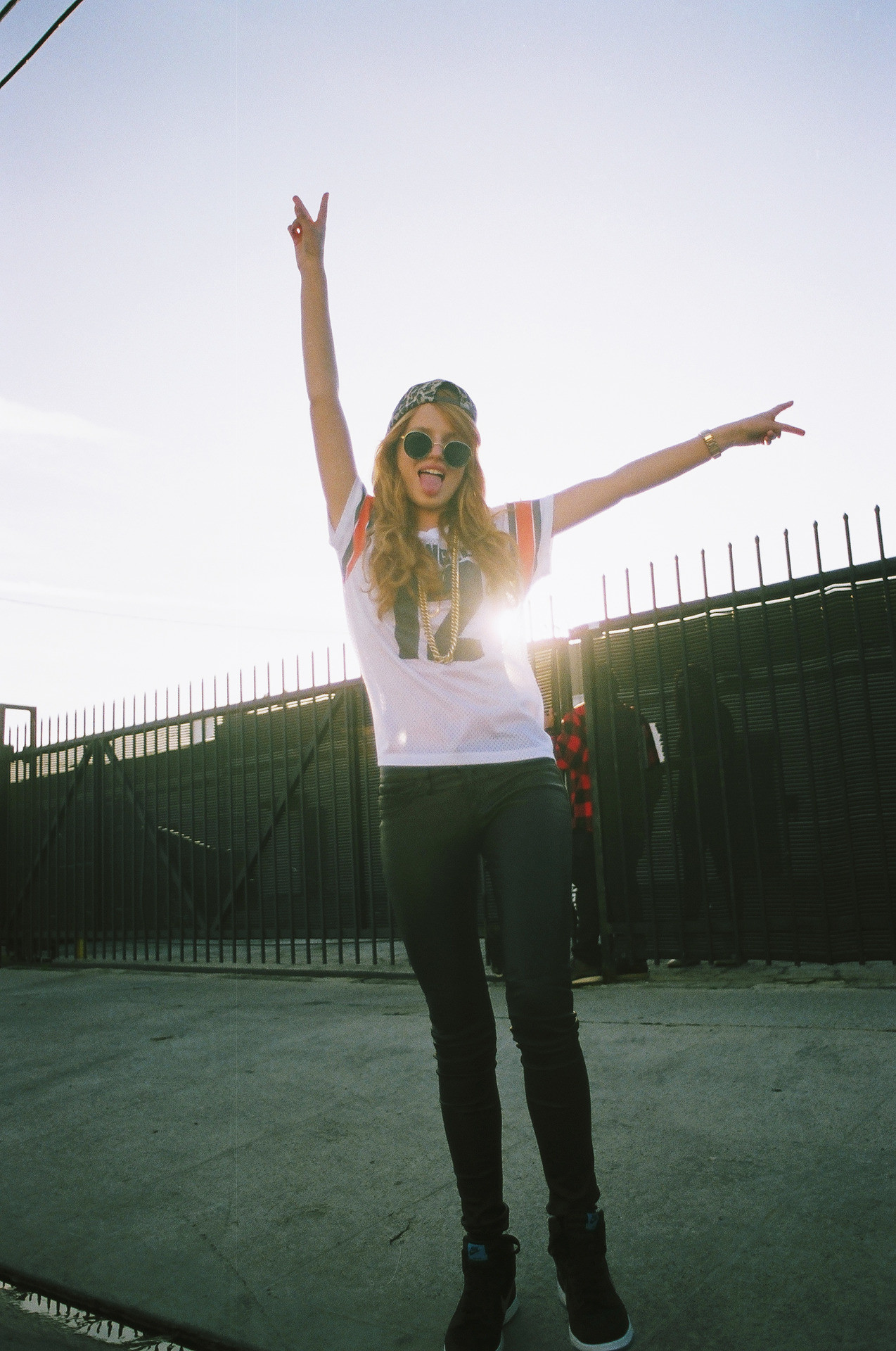 what a prudish way to hide her cleavage