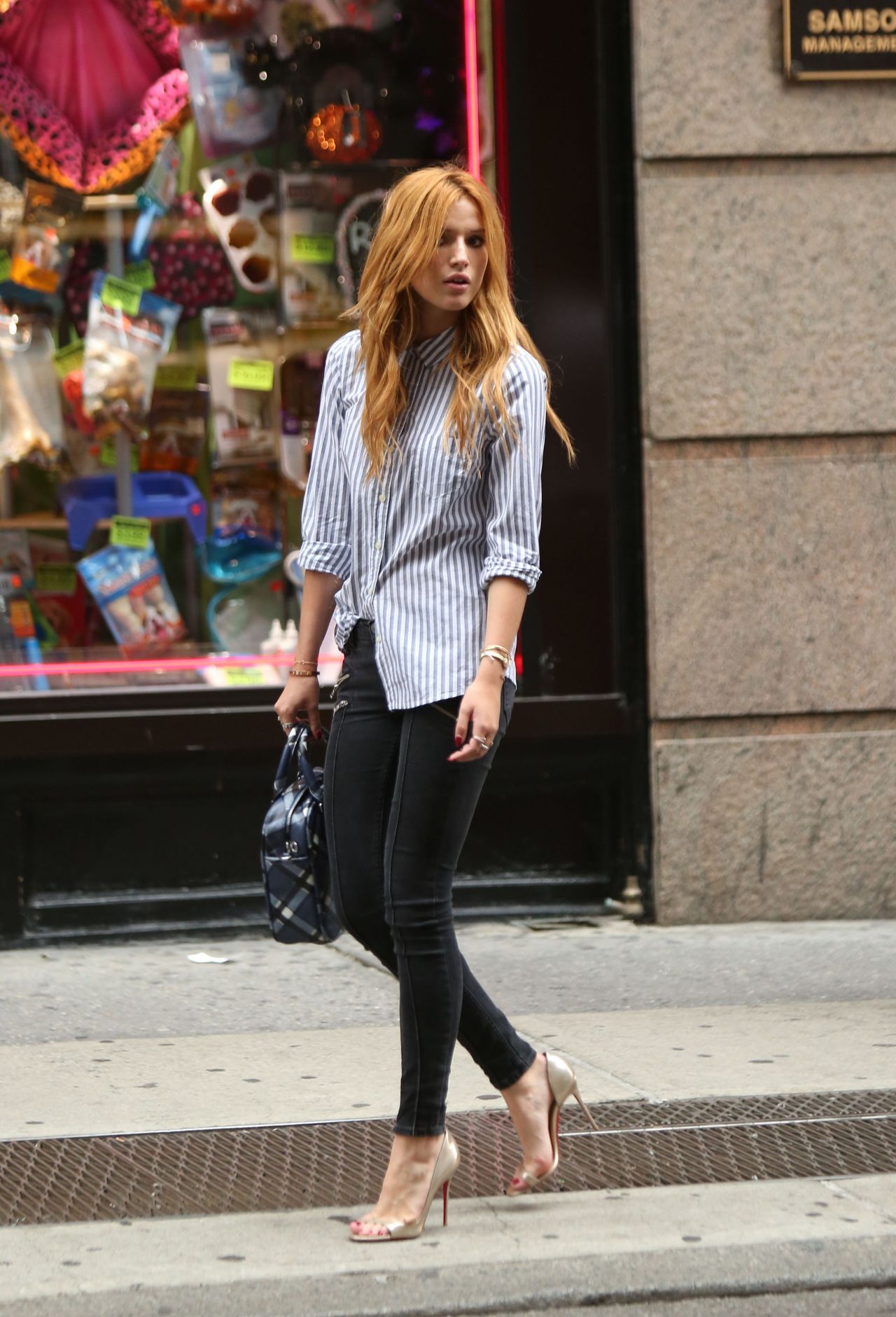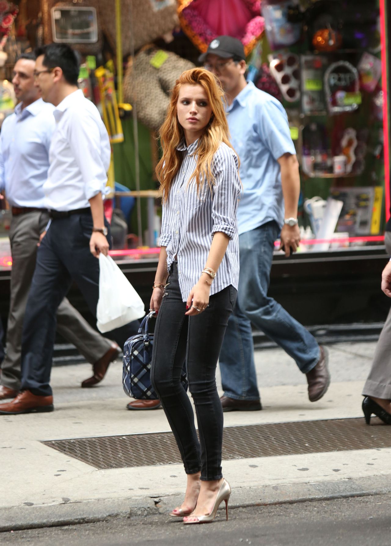 Bella in Black Skinny Jeans Trying unsuccessfully to Get a Cab in New York City September 12, 2014