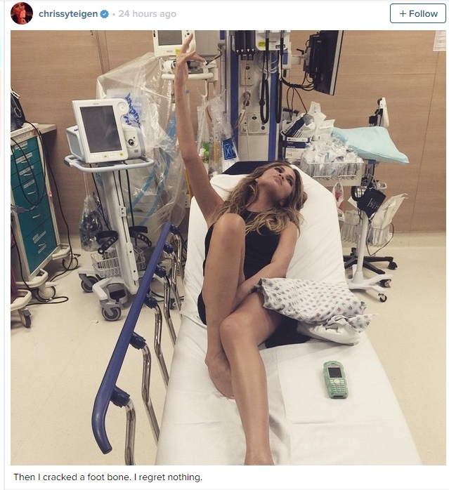 She apparently busted her foot while taping a lip sync contest. I'll let you guys do what you do with that