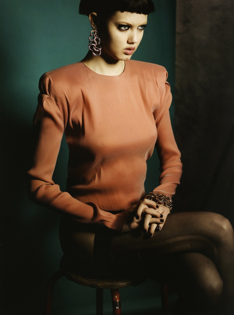 Bombay Dreams – The April issue of Dazed & Confused highlights Chanel’s Indian inspired pre-fall collection with a story starring Lindsey Wixson. Max Farago (Total World) captures off-kilter images of Lindsey as she spends a solitary day in a hotel room setting. Styled by Karen Langley, the American beauty dons smokey eyes and tousled locks.