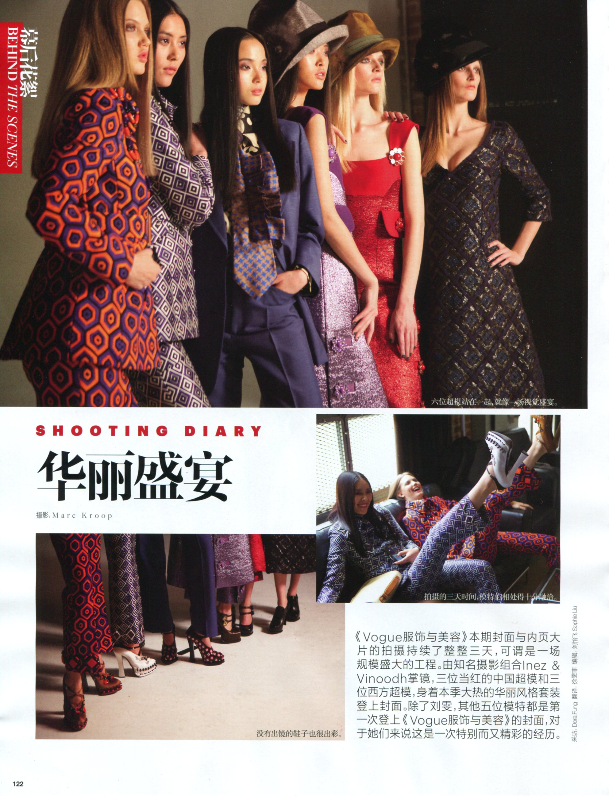 Editorial "Femme Fatale" (Chinese title: "閨中蜜語") + Behind the Scenes "Shooting Diary" (Chinese: "華麗盛宴") in Vogue China September 2012.