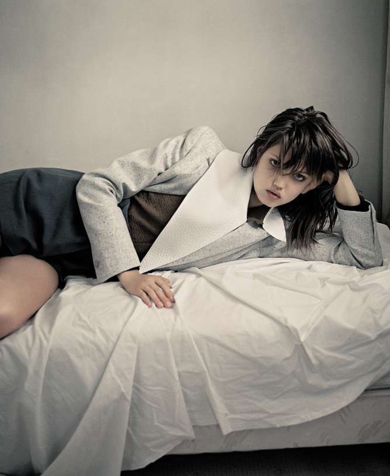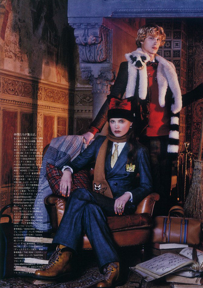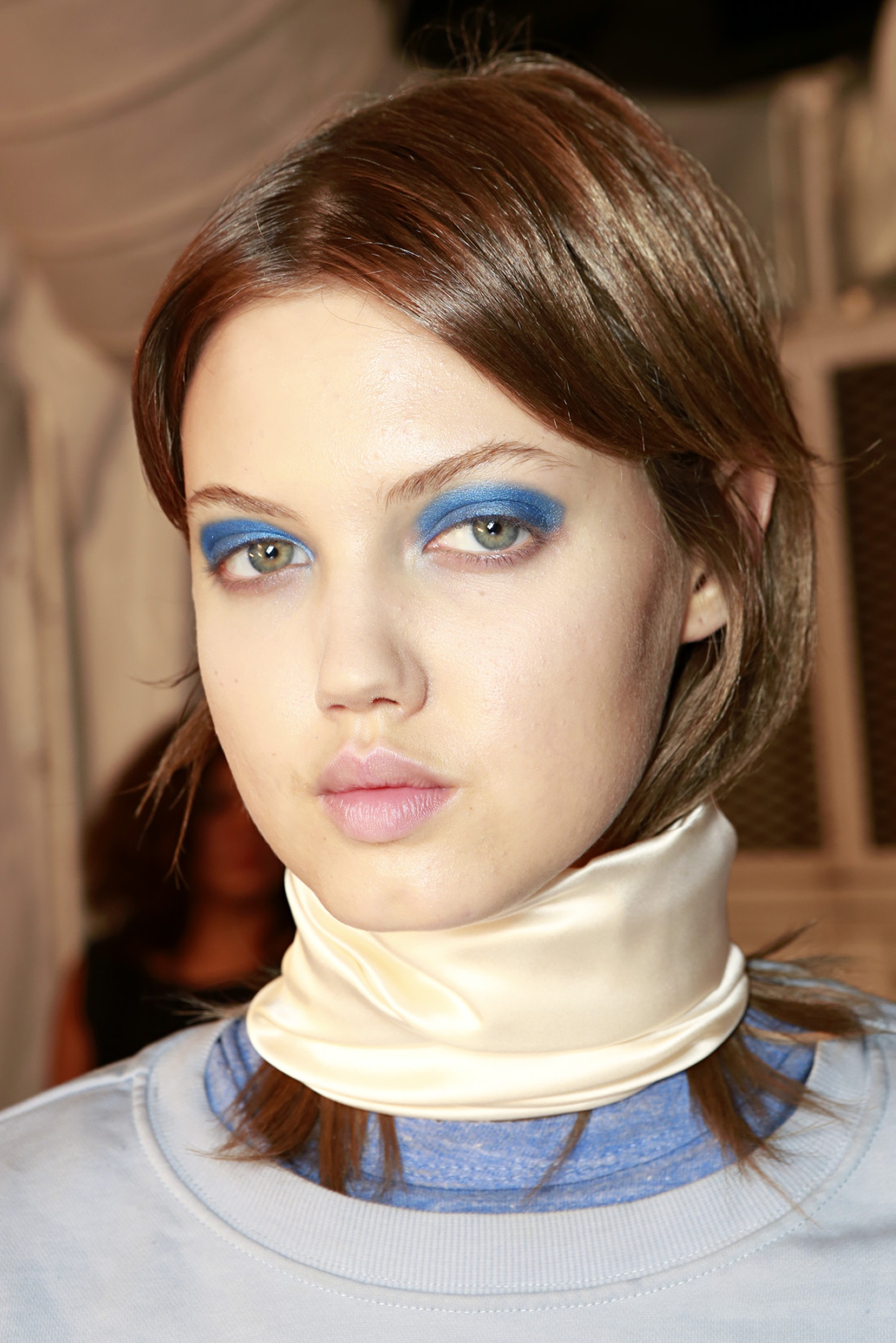 I feel the most beautiful with a taupe smoky eye with mascara, like Versace, old school…To do the smoky eye, I just rub on some brown eyeliner and smudge it around. I also like doing that kind of glowy, 'supermodel eyebrow' thing. Pat [McGrath] calls it a 'supermodel eyebrow' because she’ll make it super…chic. Thick and defined, but not overpowering, just sort of adding to what you’ve already got. You have to really know your face to do your eyebrows yourself. I use this brow kit called Brow Zings by Benefit in the Light color. I recently had my eyebrows bleached. I don’t really have a say in whether my eyebrows are bleached; it’s just how work is. I just go with it. I don’t care at this point. I’m fully past caring. [Laughs] And it’s part of getting into character, you know? So are the lips. My lips are a lot thinner than what makeup artists usually create, because they make them almost graphic. I love having my makeup done by Aaron de May because he knows how to make you feel comfortable. He’s one of my favorite people ever. And Rose-Marie Swift. I think those are my two favorite people.