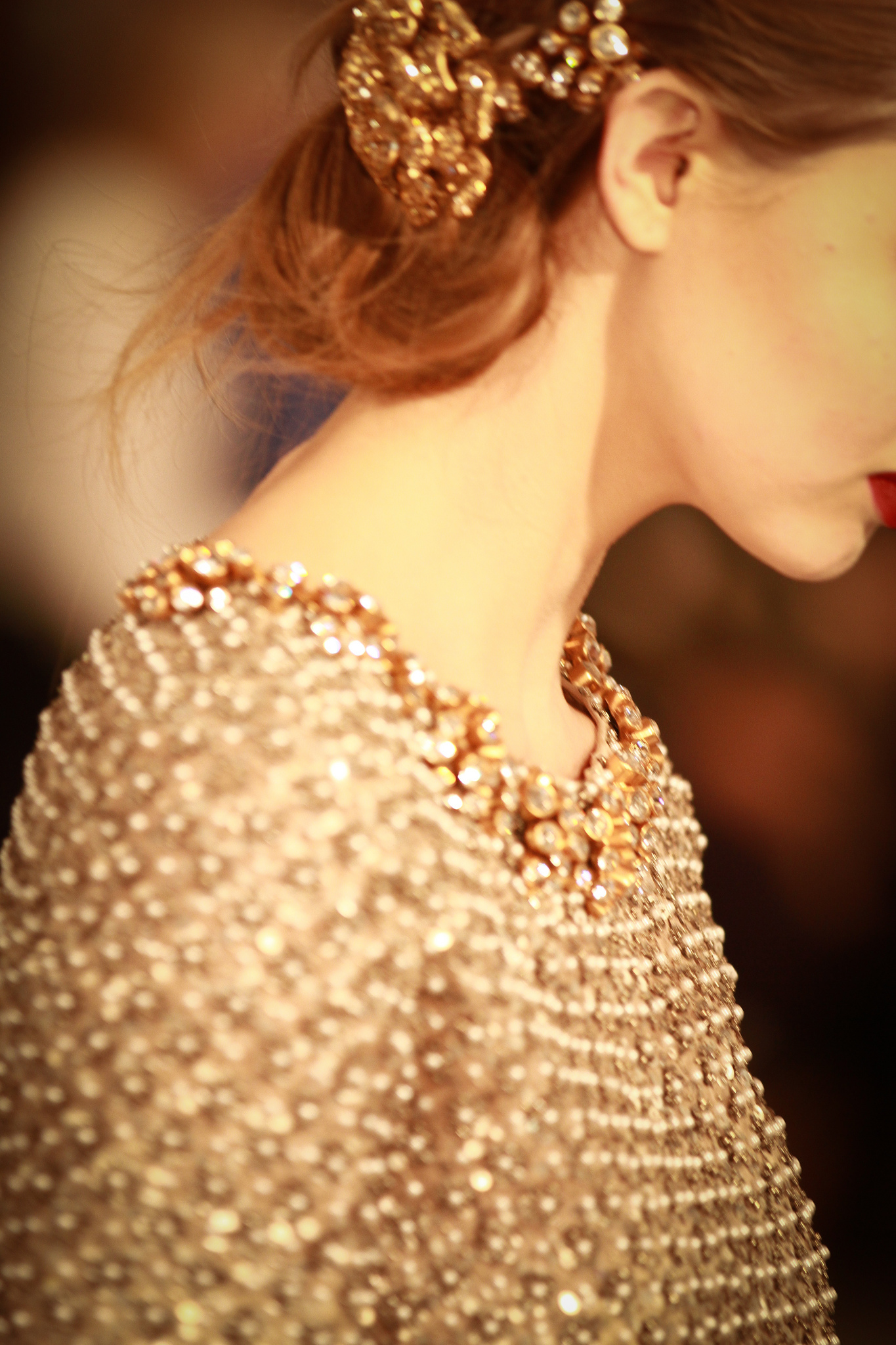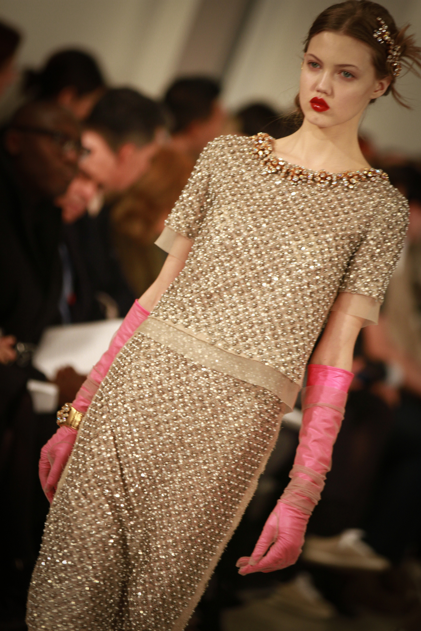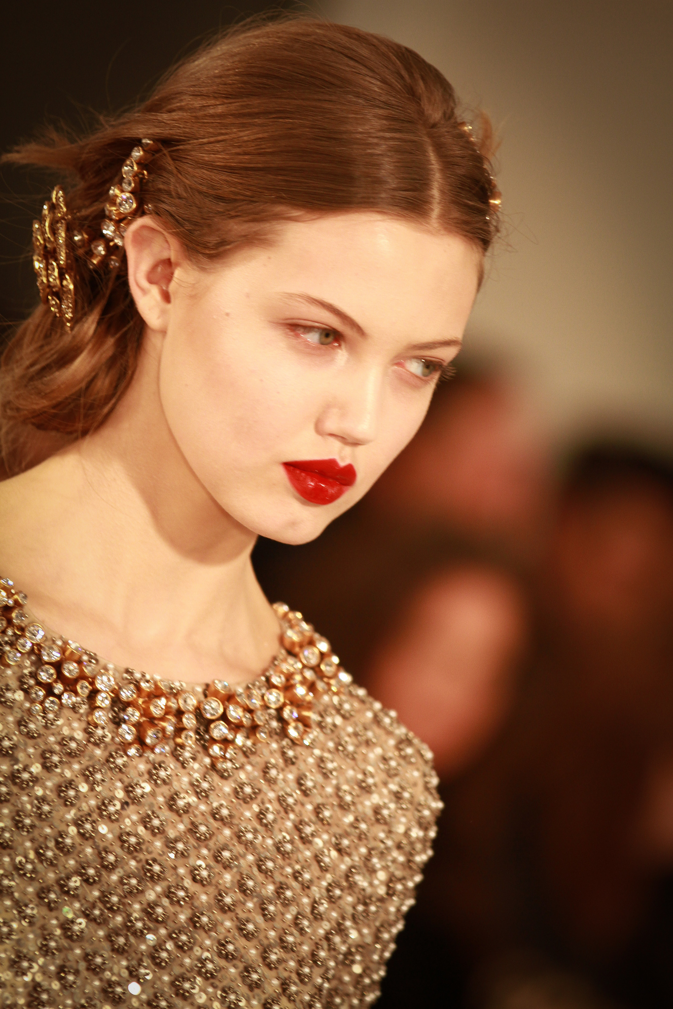 I feel the most beautiful with a taupe smoky eye with mascara, like Versace, old school…To do the smoky eye, I just rub on some brown eyeliner and smudge it around. I also like doing that kind of glowy, 'supermodel eyebrow' thing. Pat [McGrath] calls it a 'supermodel eyebrow' because she’ll make it super…chic. Thick and defined, but not overpowering, just sort of adding to what you’ve already got. You have to really know your face to do your eyebrows yourself. I use this brow kit called Brow Zings by Benefit in the Light color. I recently had my eyebrows bleached. I don’t really have a say in whether my eyebrows are bleached; it’s just how work is. I just go with it. I don’t care at this point. I’m fully past caring. [Laughs] And it’s part of getting into character, you know? So are the lips. My lips are a lot thinner than what makeup artists usually create, because they make them almost graphic. I love having my makeup done by Aaron de May because he knows how to make you feel comfortable. He’s one of my favorite people ever. And Rose-Marie Swift. I think those are my two favorite people.