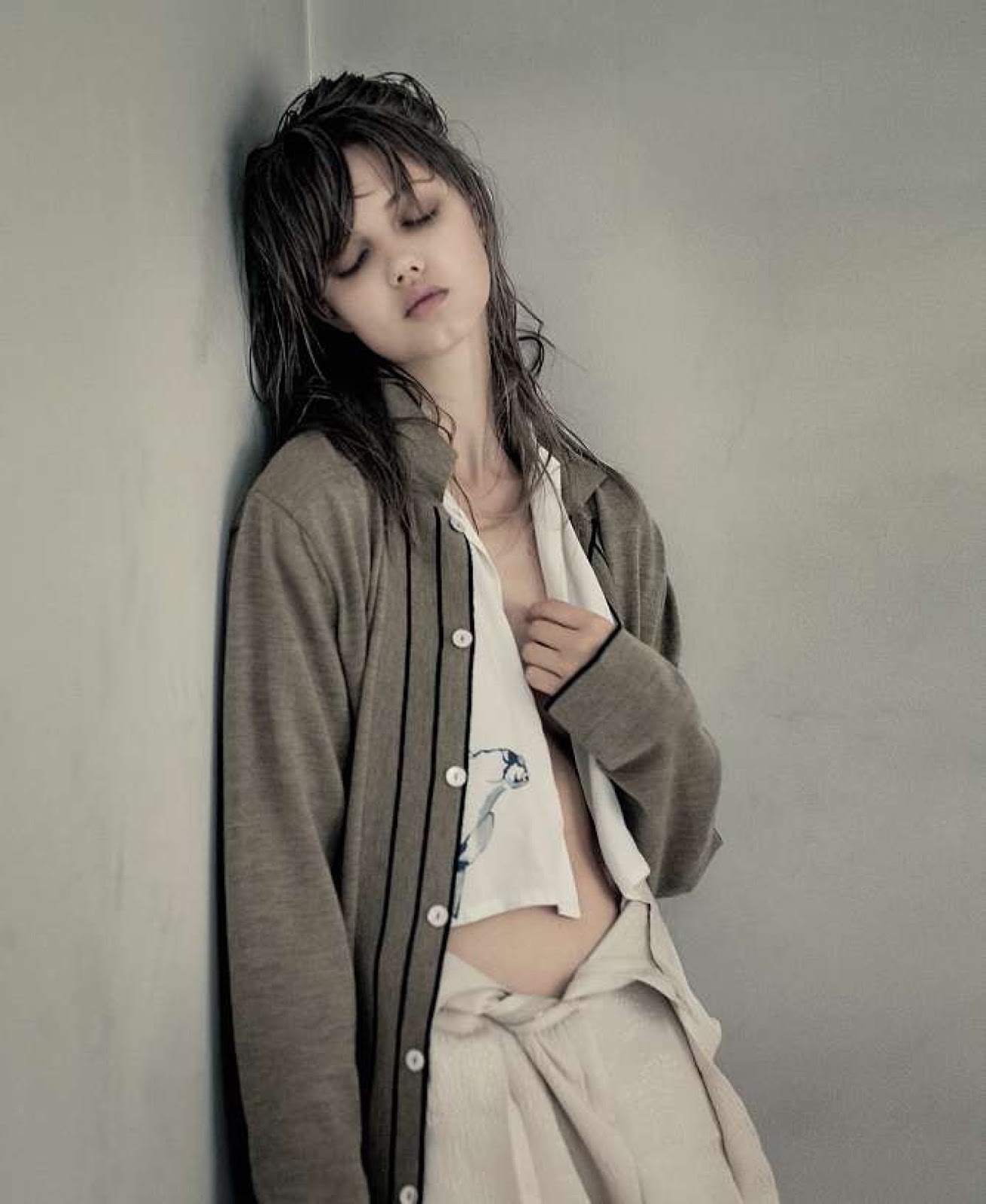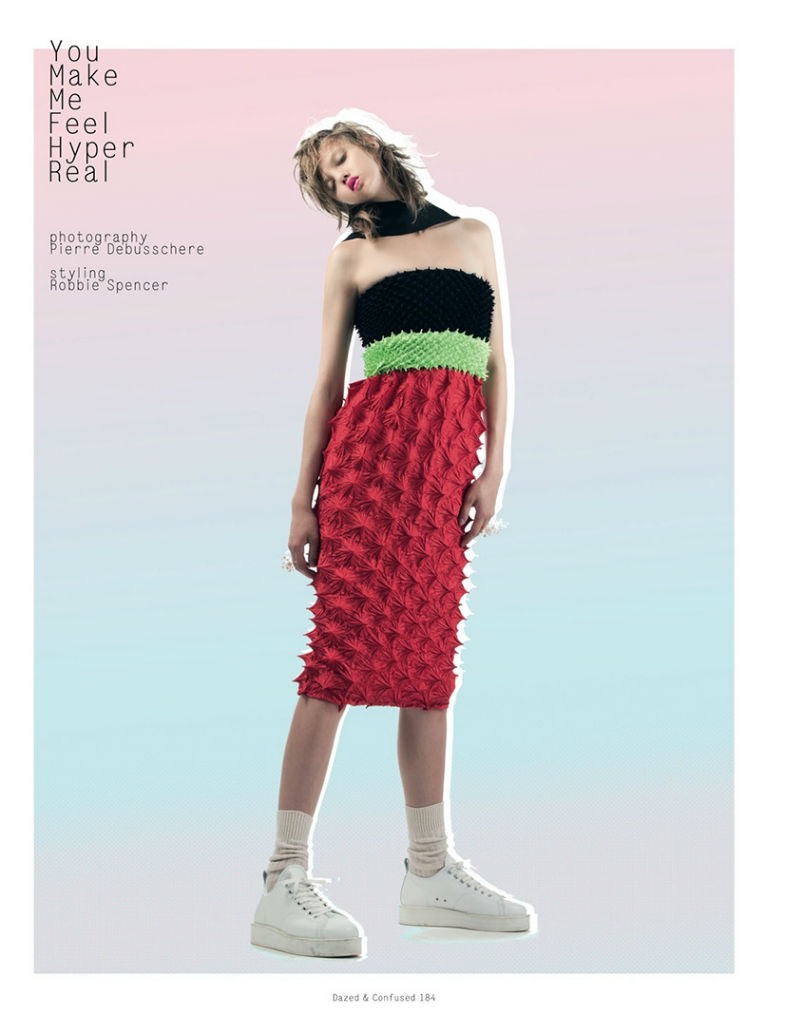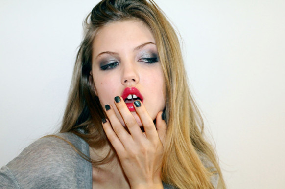 I would actually prefer to do my own makeup. Don’t get me wrong, I’m happy to have someone do my makeup—I think everyone is—but it gets a little intense during fashion week. Just like, they’ll put different products on and use Embryolisse a lot, I get sort of like polyps or little pimples. It’s just really gross. To get rid of little bumps, I use an ionized clay by Living Clay. It comes from California. They have a mask, they have a muscle rub with peppermint and tea tree oil, and lotions and stuff. It’s really good if you have bad arthritis or bad skin issues. I’ve had really easy skin, but I’ve always just washed my face and had a routine. I was afraid that I was going to get really bad skin when I started modeling, so I would always exfoliate. The first scrub I used was St. Ives Apricot Scrub and Aveeno Positively Radiant—the one without the sparkles. And for moisturizing, this stuff is great: Cocoon Apothecary Kahuna Body Lotion. I’m all about natural. My mom would use any lotions and not even care what was in it. I think, for me, the Internet has been a really good resource. I’ve educated myself with what’s really going on with skincare.