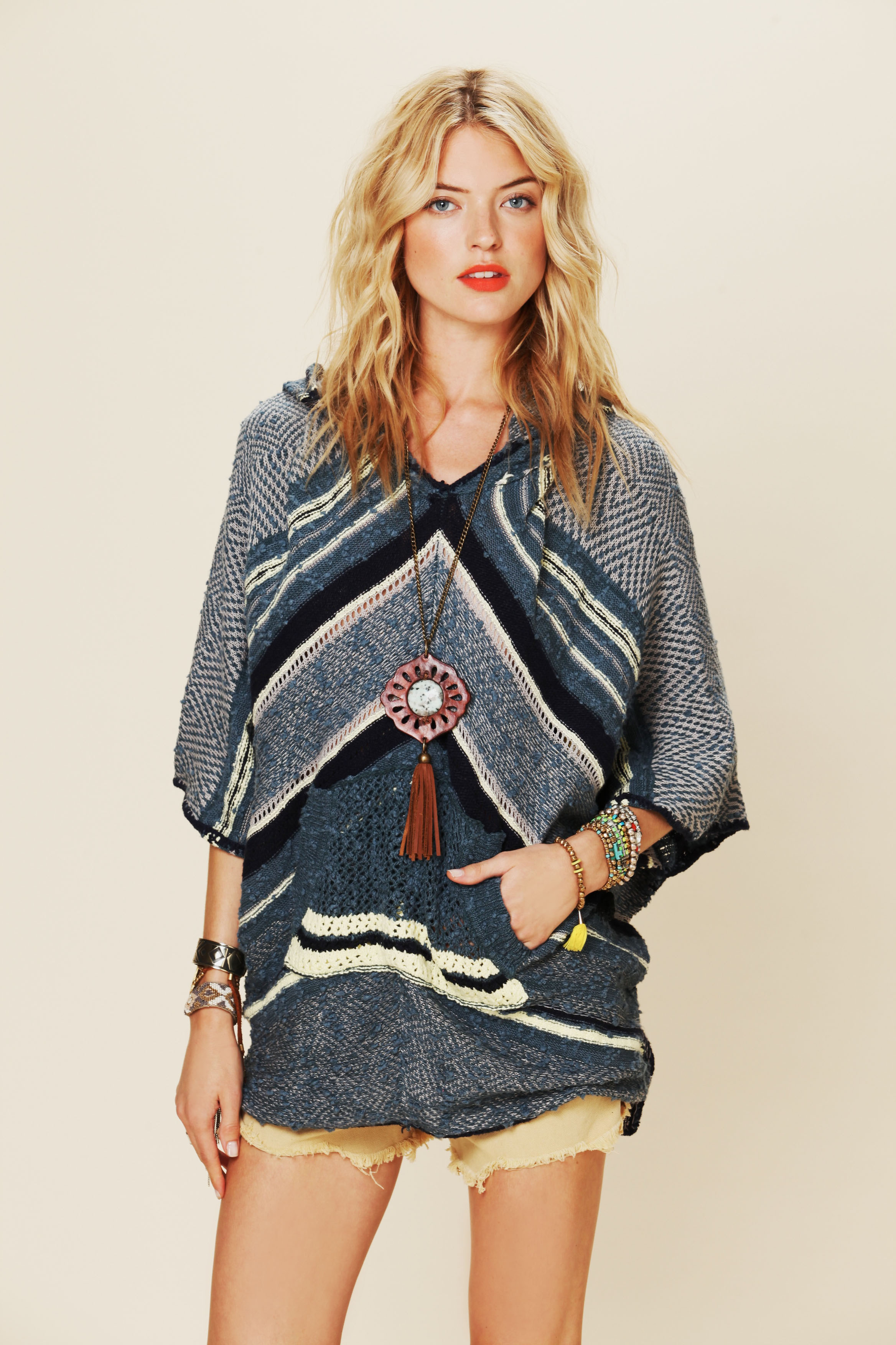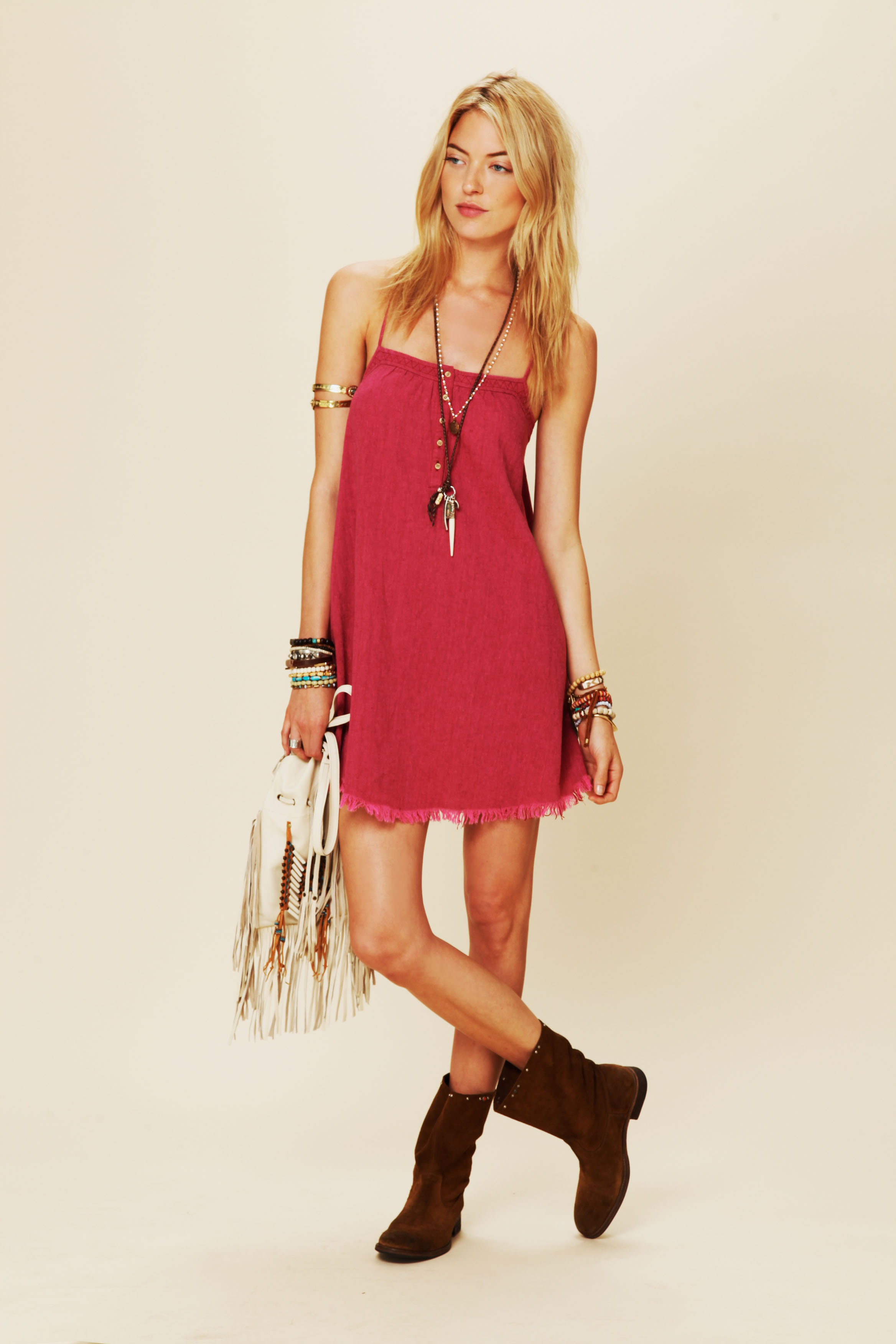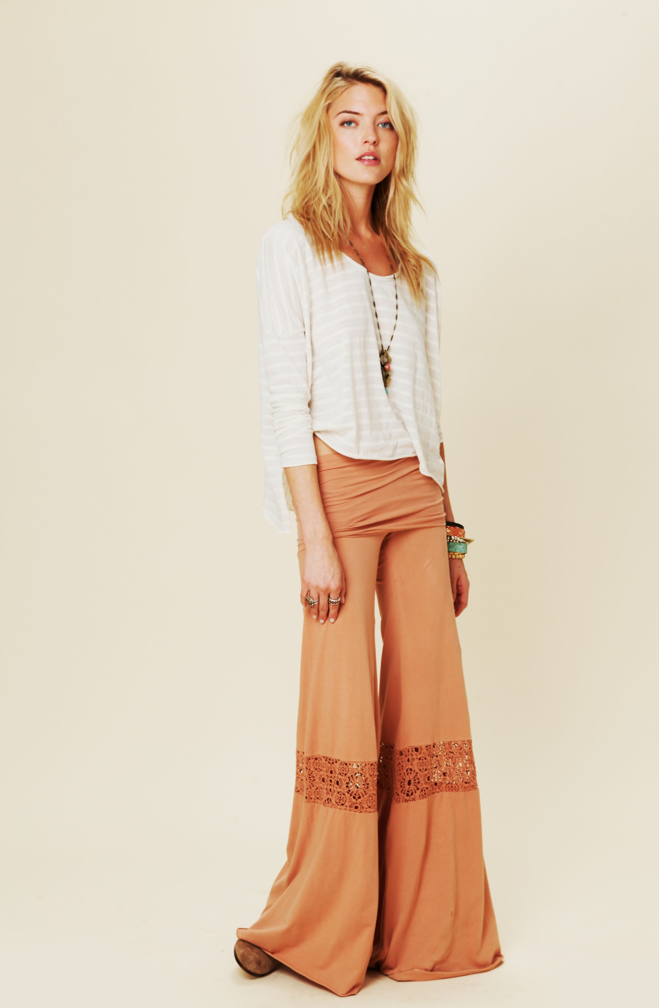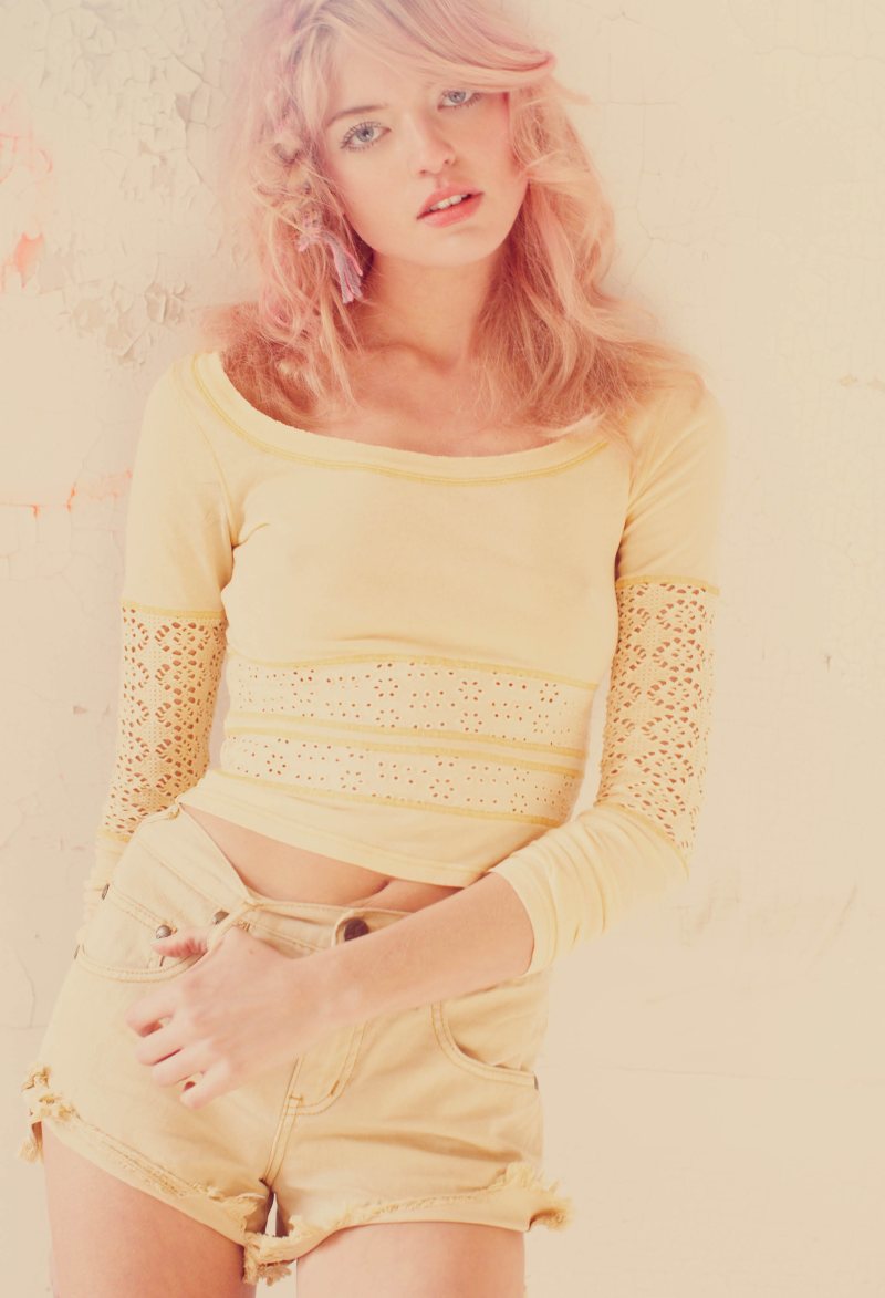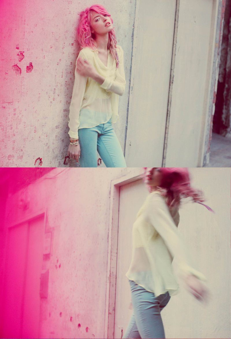 Color Me Pretty – Martha Hunt stars in the February lookbook from fashion retailer Free People. Photographed by Anna Palma in New York City, Martha oozes casual carefree in lightweight knits, lace and denim looks. The bohemian style is accented by pink hair and understated makeup.