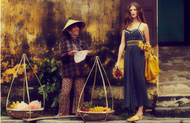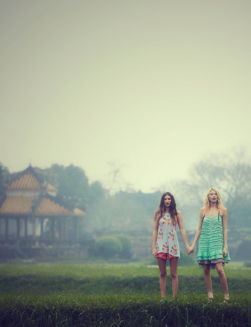 March in Vietnam – Free People takes to Vietnam for their March catalogue starring Martha Hunt and Michele Ouellet, photographed by Joshua Allen. Colorful flowing dresses, denim and short skirts ooze an easy breezy spring feeling as the duo takes in the sights and attractions of the beautiful country from Hanoi to Halong Bay.