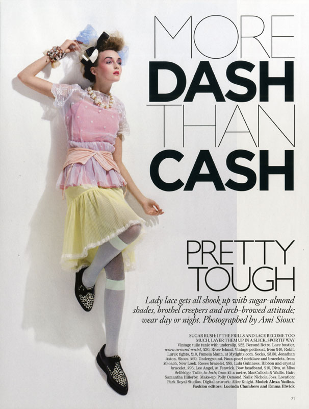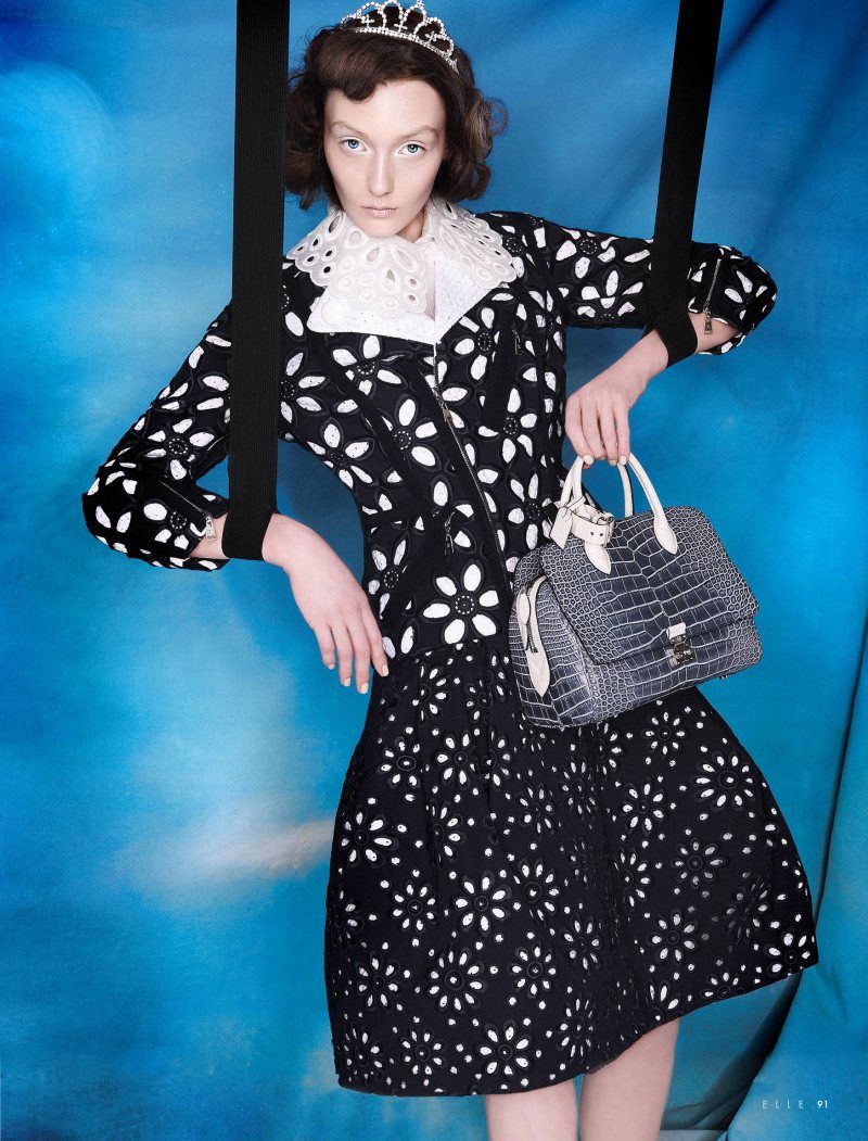 Pastel Puppet – Alexa Yudina plays a puppet on strings for the April cover shoot of Elle Dubai, shot by Giovanni Squatriti. Wearing pieces from Louis Vuitton’s spring 2012 collection styled by Cori Amenta, Alexa is pretty in pastels against a sky blue backdrop.