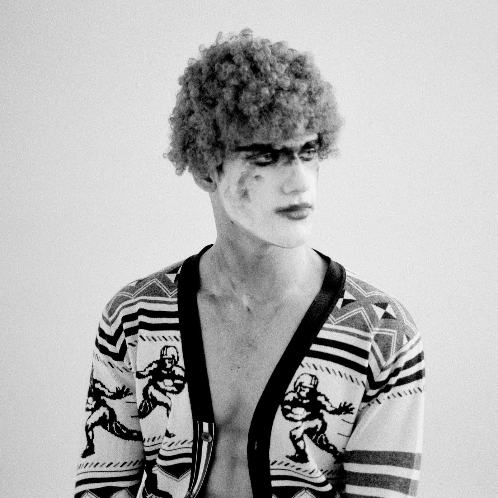 He looks great in clown make-up! Seriously, this guy is my favorite male model, purely 'cause he looks good...