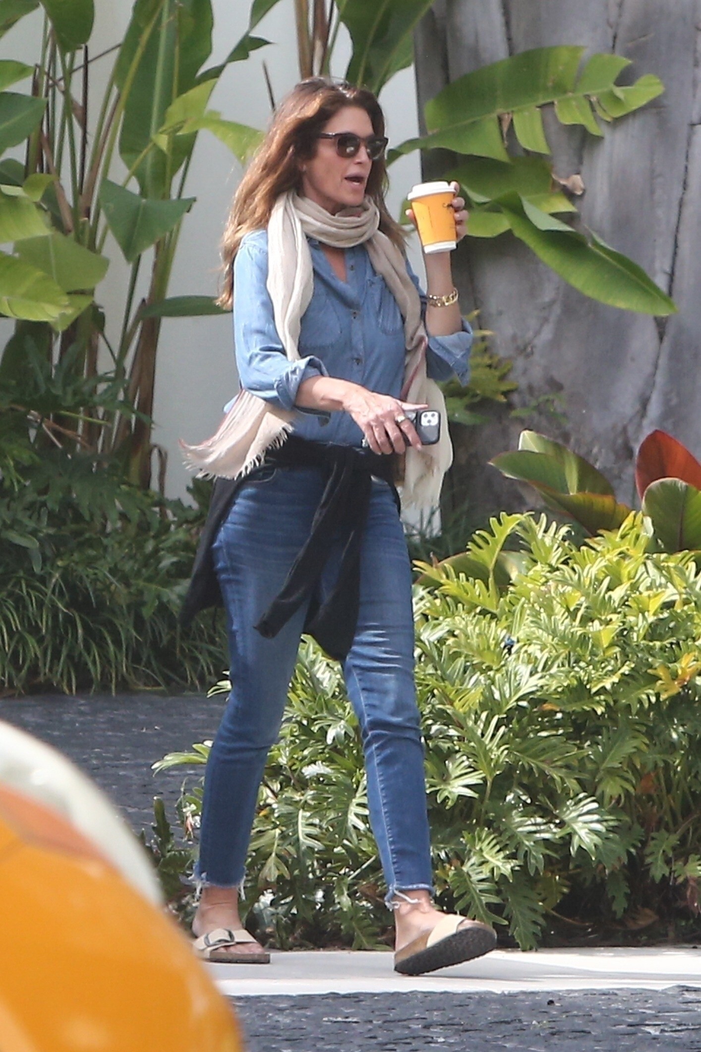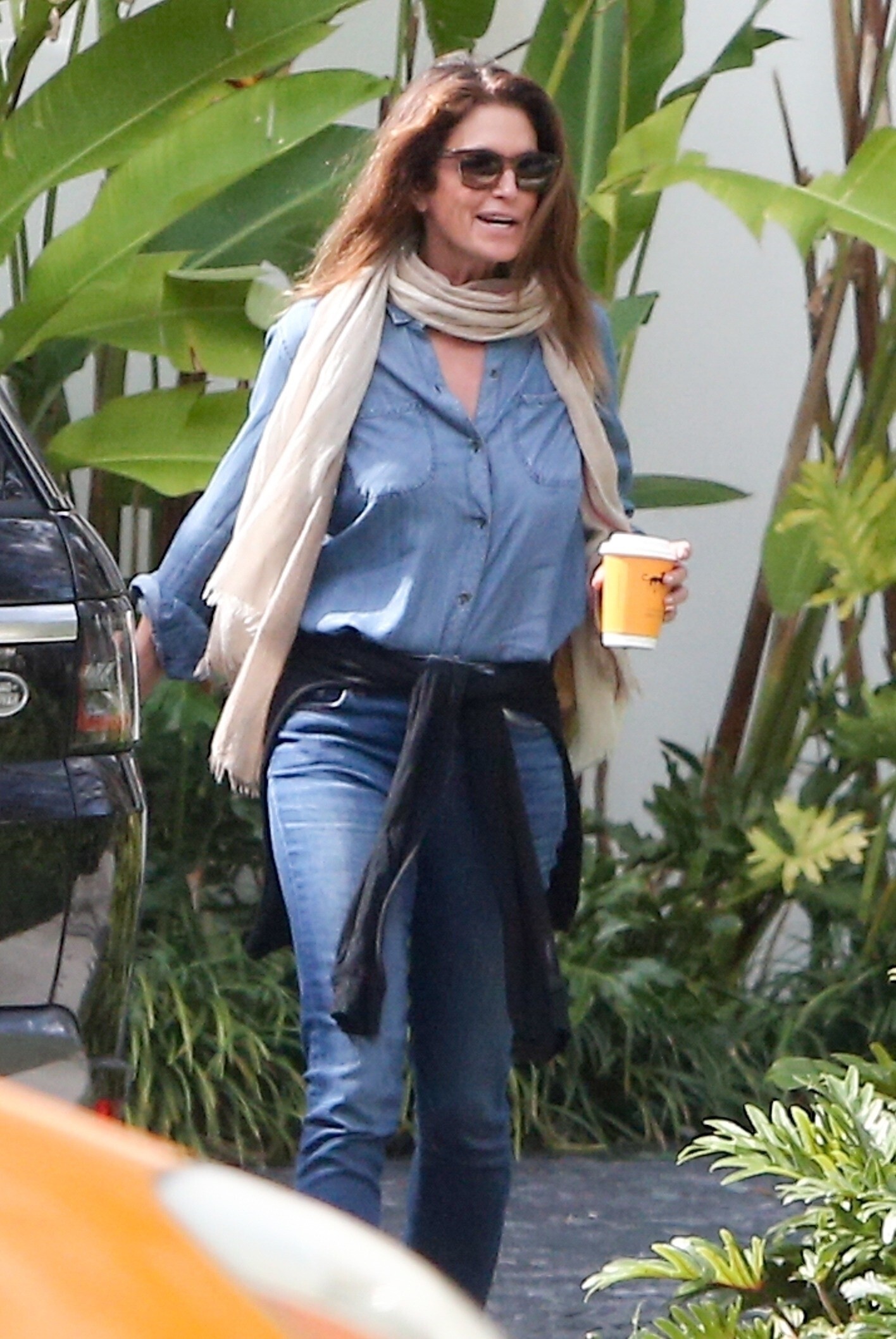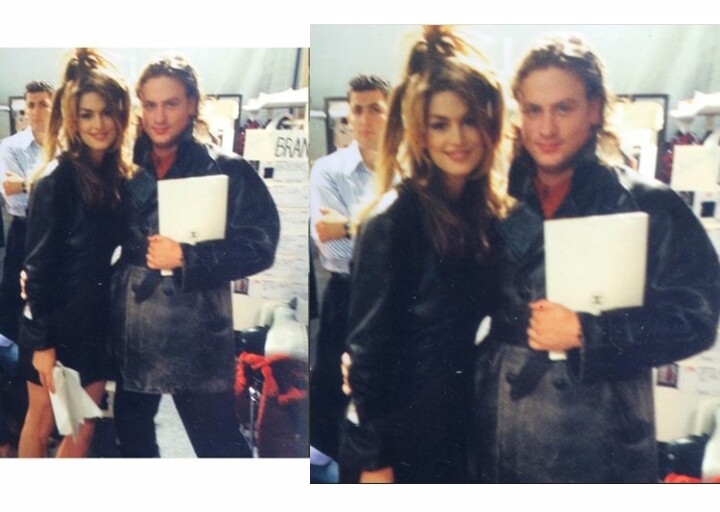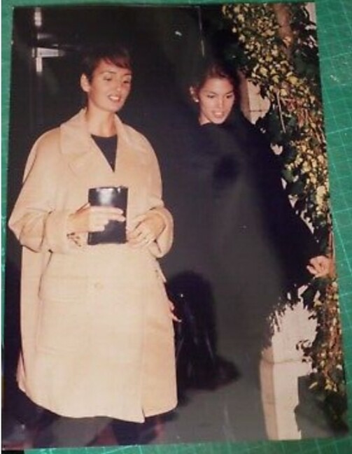 Cindy Crawford with Gail Elliott, leaving restaurant, 1993