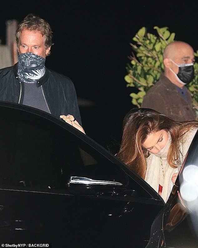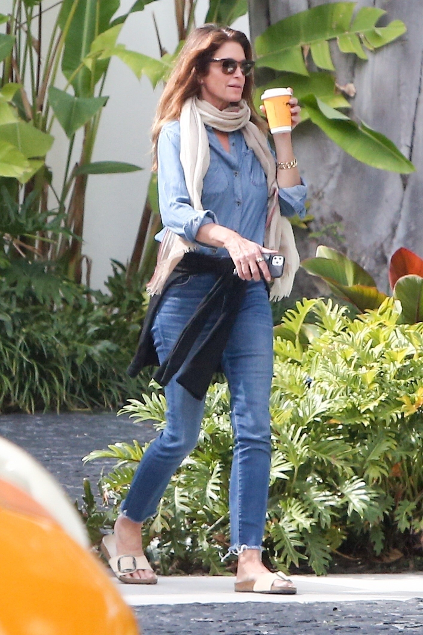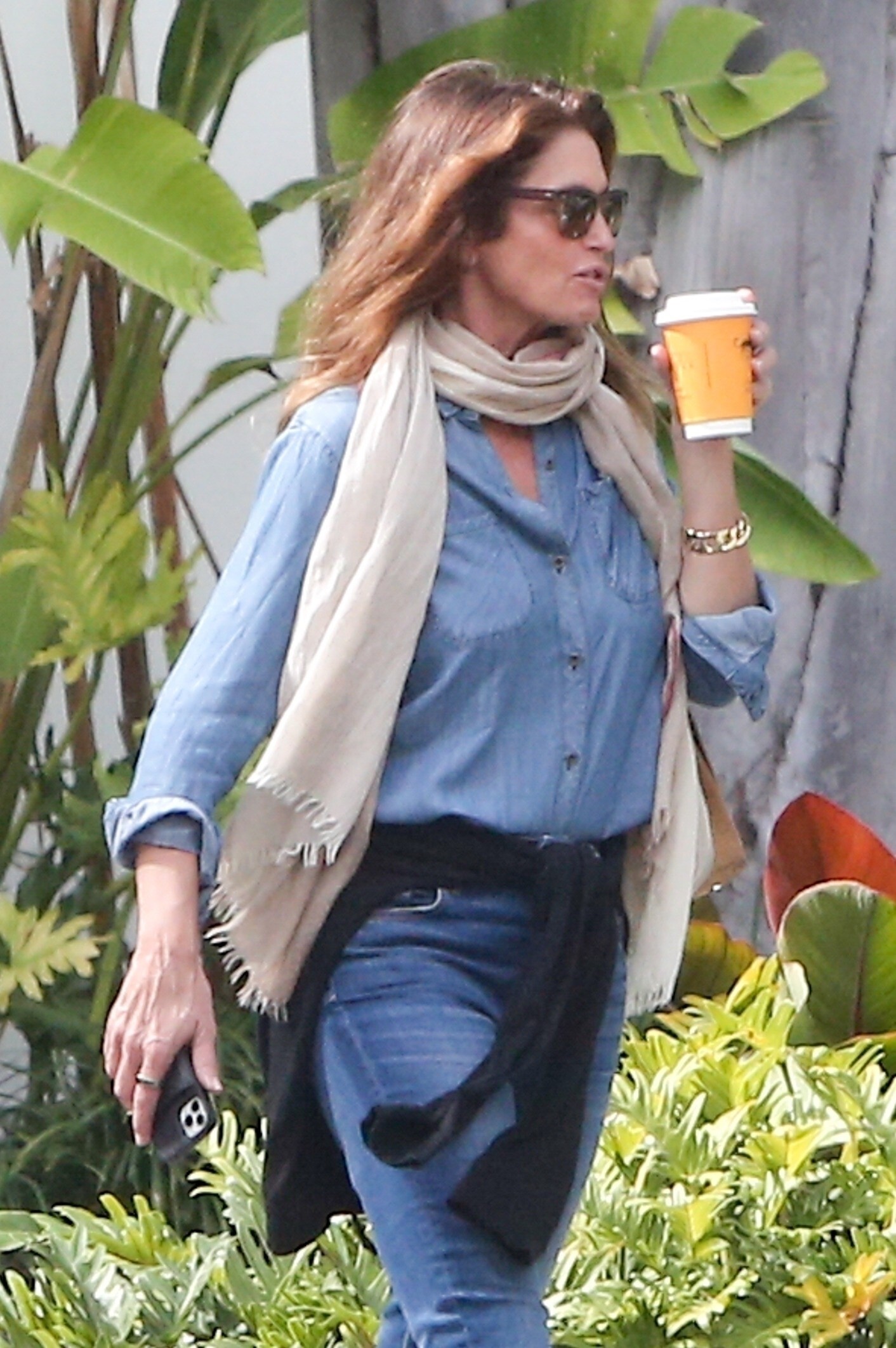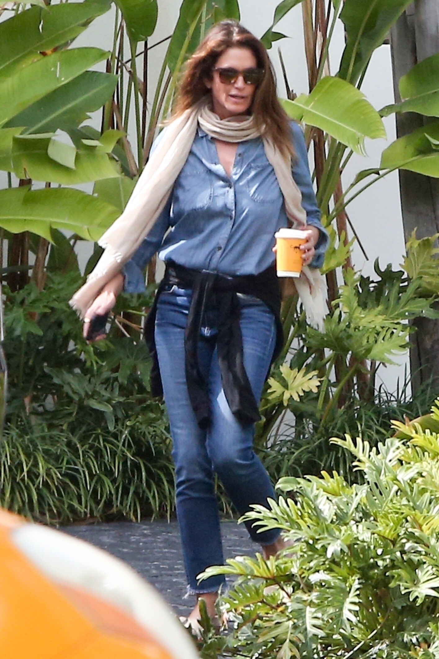 Cindy Crawford with Gail Elliott, leaving restaurant, 1993