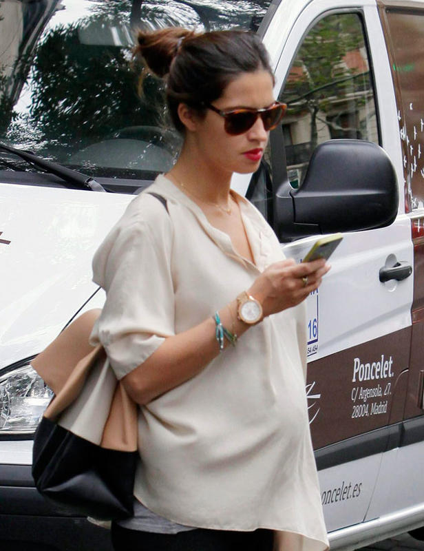 With jeans , white shirt and black leather jacket , Sara Carbonero proudly shows his tummy before releasing a blog undoubtedly starting next October 22 will be referred to many.