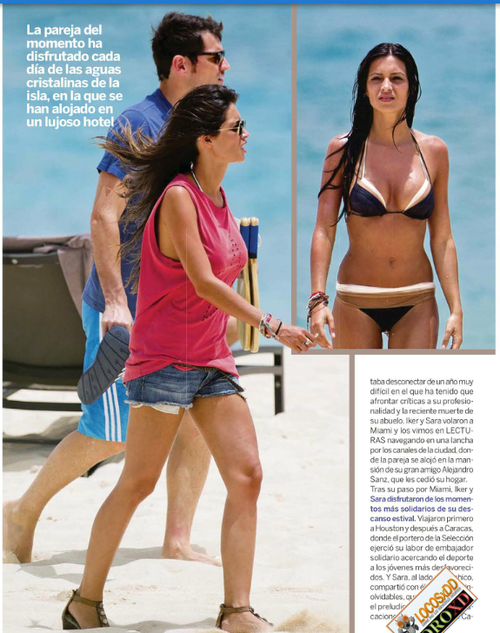 Iker Casillas and Sara Carbonero spent the weekend in Anguilla. Am told the two are still deliriously in love, all over each other at the pool and the beach. Interestingly enough, at one point, according to other hotel guests, they were looking at a “big ring” on her finger and laughing. Am told that the two were behaving like honeymooners. Please note however that Iker was not wearing a ring.