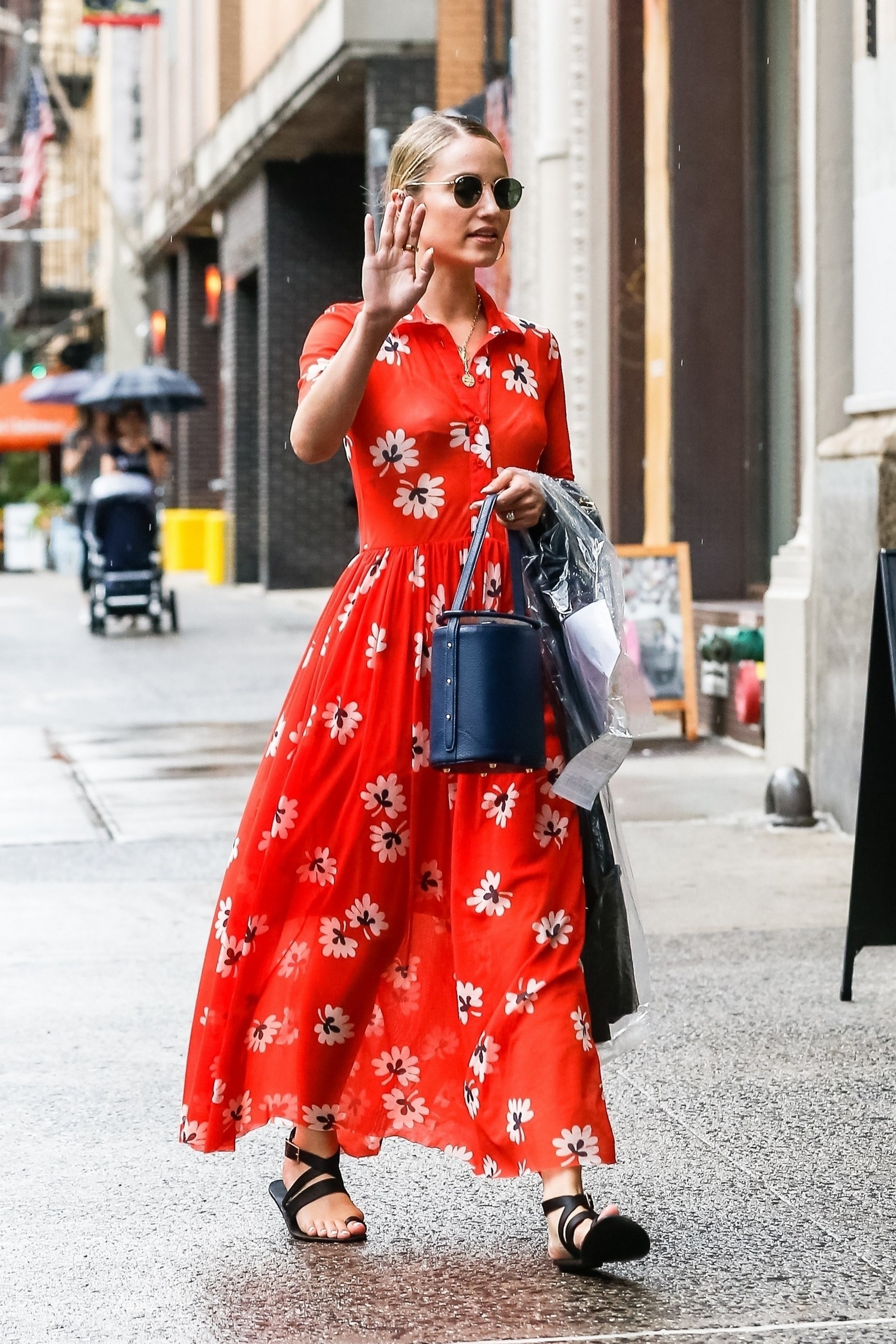 Dianna Agron in a print dress, out in Los Angeles, CA - Aug 8, 2018