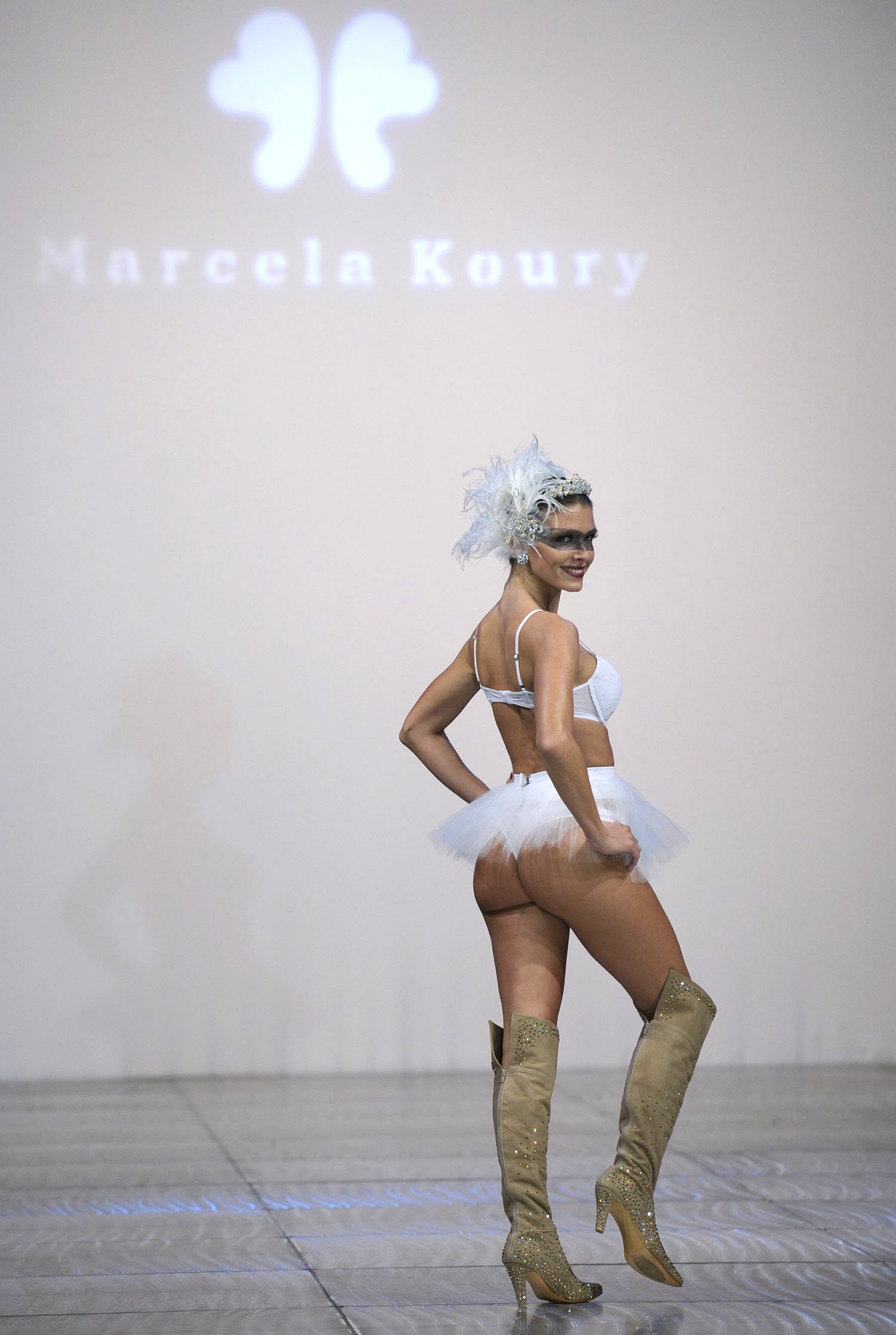 Sofía Zámolo displays a lingerie creation by Argentinian designer Marcela Koury, during Buenos Aires High Fashion, part of Argentina Fashion Week, in Buenos Aires. March 31th 2012.