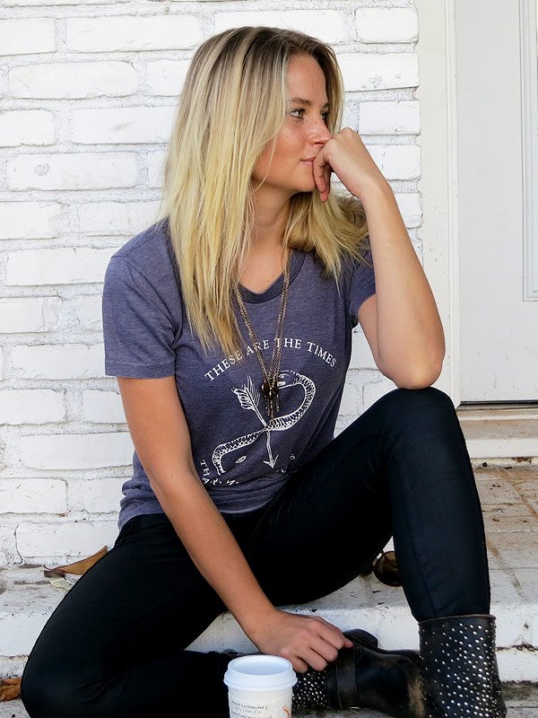 Genevieve Morton, Sports Illustrated model: “I love classic rock tees; one of my favorite places to shop and designer is Kelly Cole. I love the shirts by Kelly Cole because they are made from recycled vintage t-shirts and promote sustainability! Now, how cool is that?!”