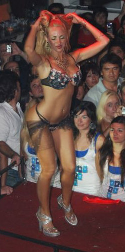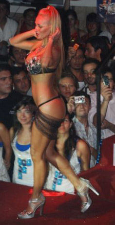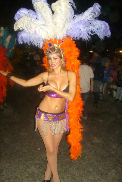 Belen Francese (Argentinian vedette) wearing a vinyl catsuit and a swimsuit in Celebrity Splash Argentina'13:
