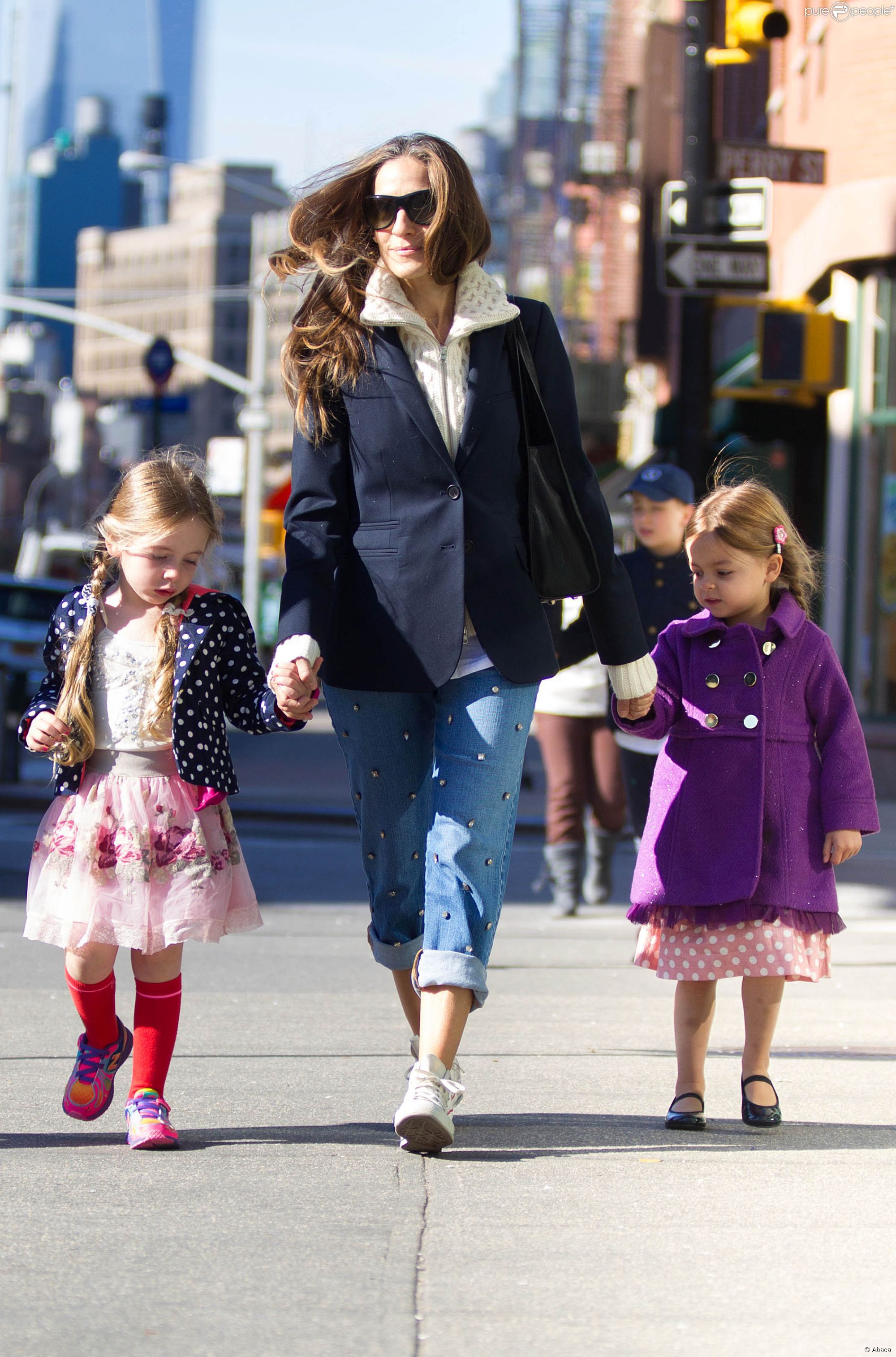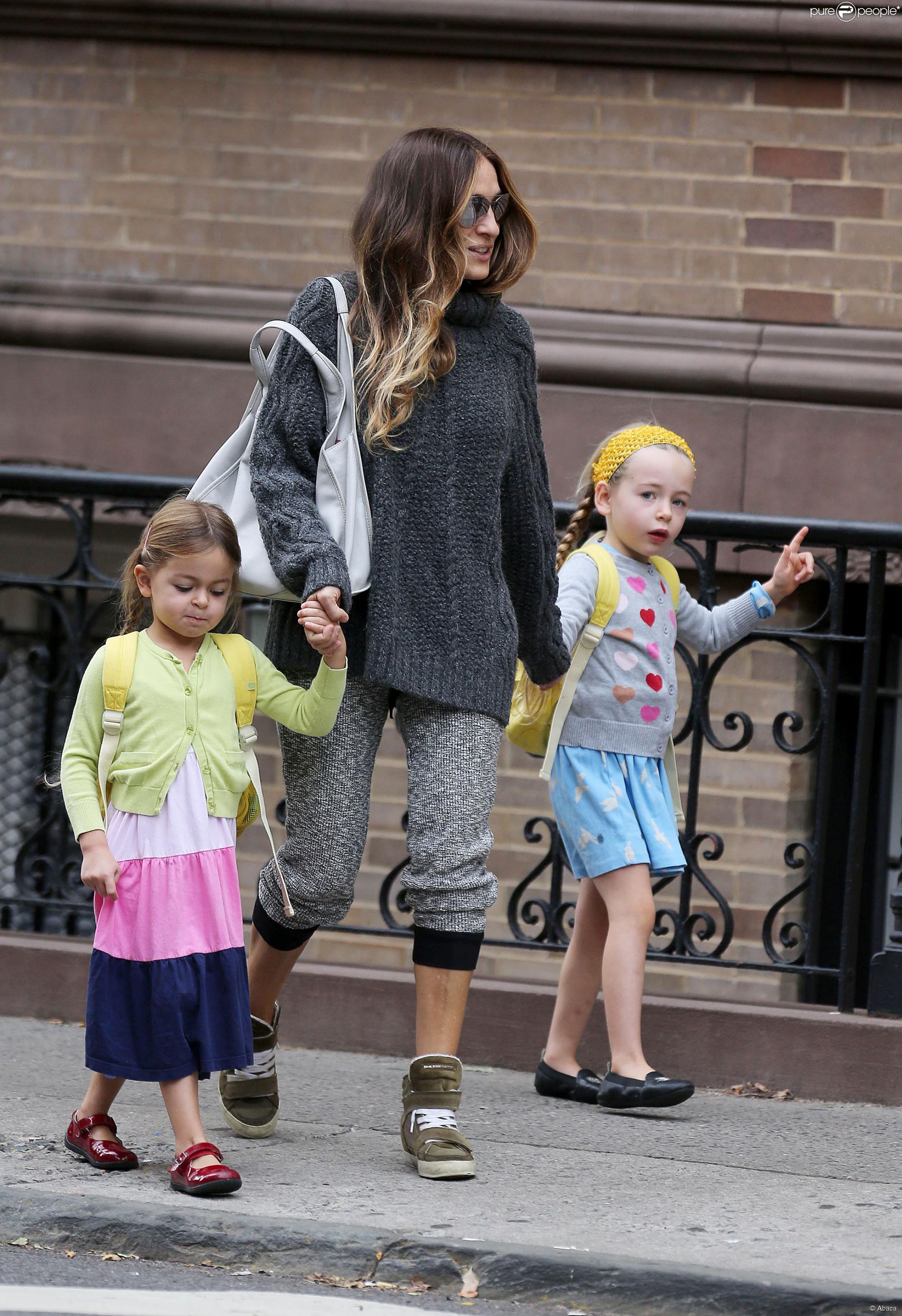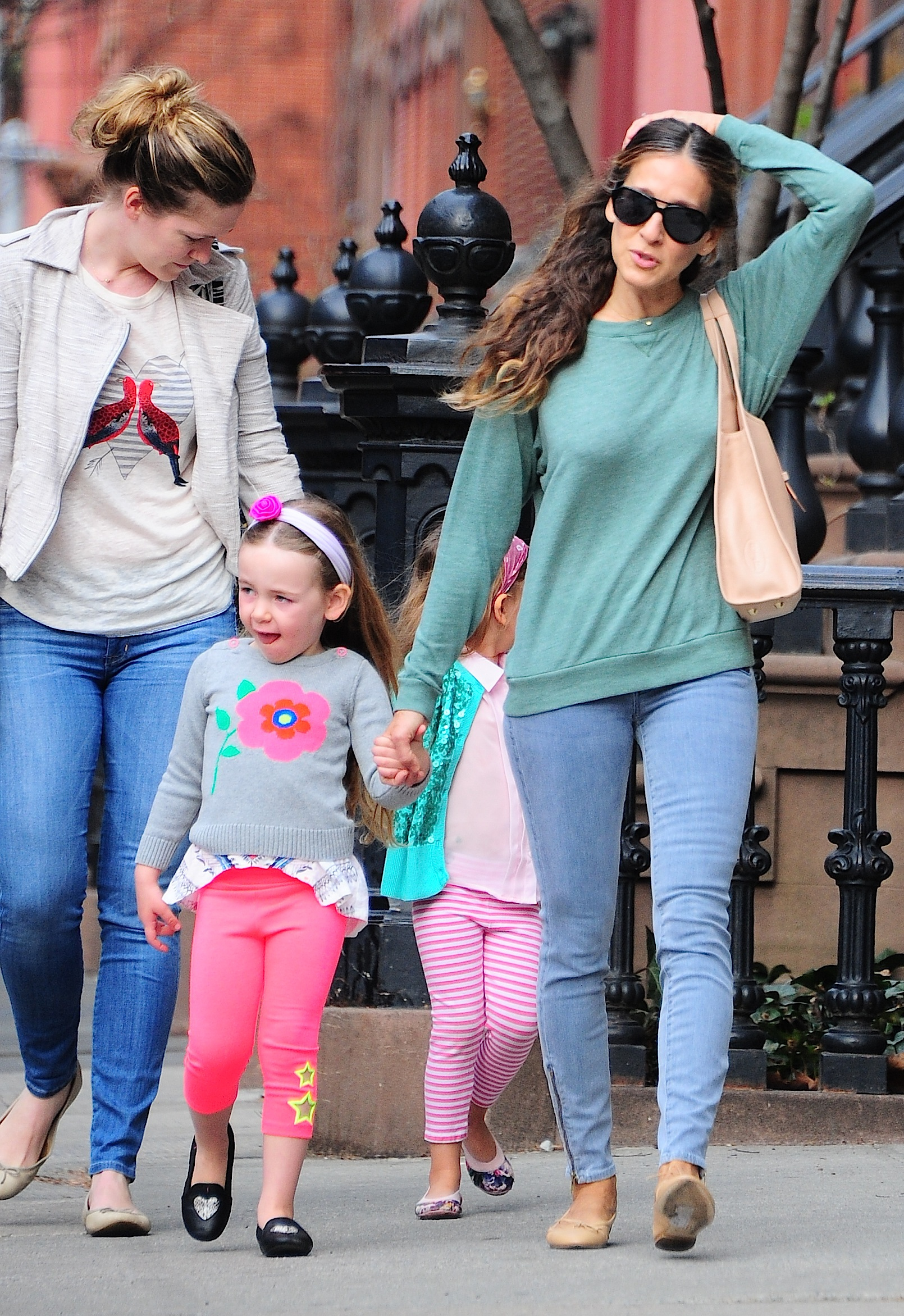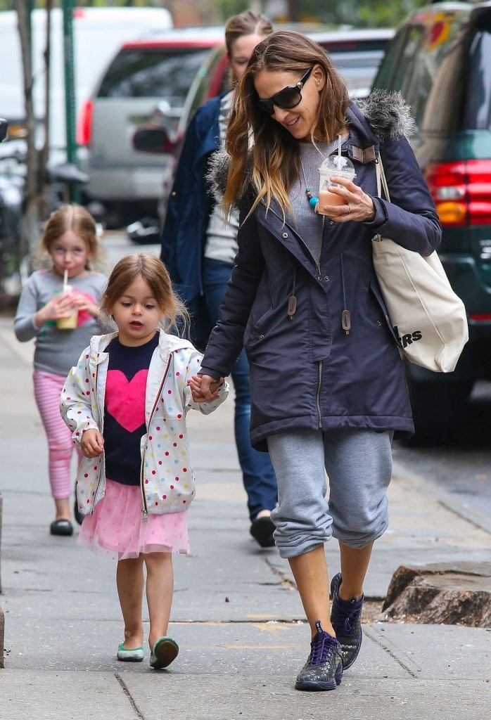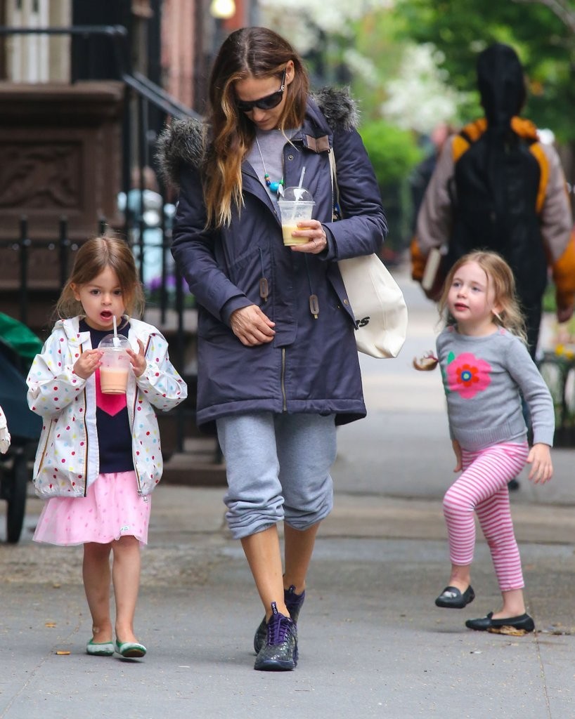 Taking her kids to school in NYC-May 9,2014.